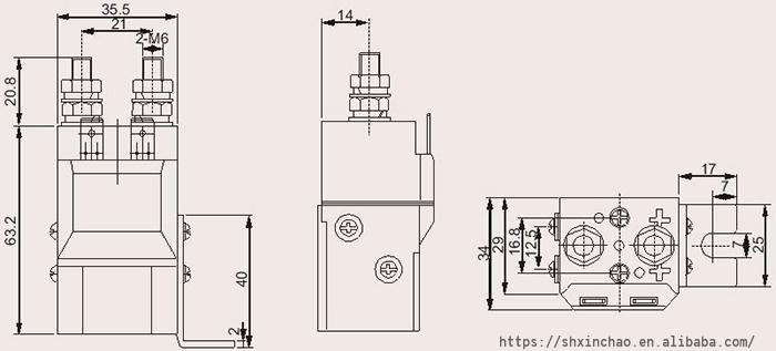 Dimension of SW200/SW300 200A/300A 1NO 1P DC Contactor: