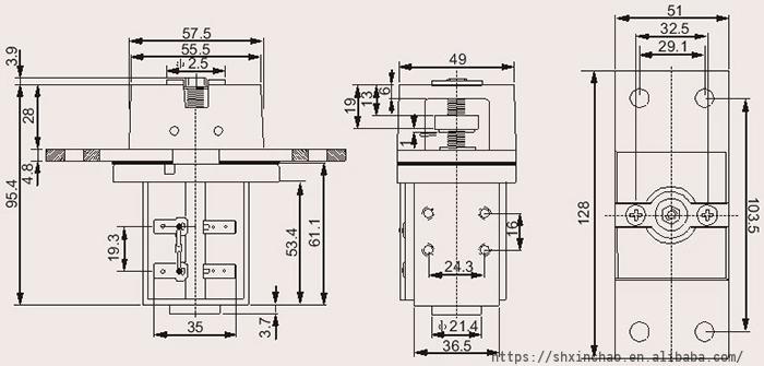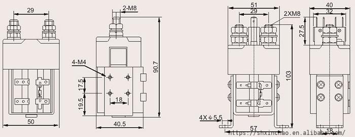Dimension of SW50 50A 1NO 1P DC Contactor: