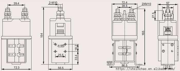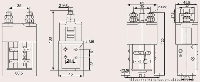 Dimension of SW500 500A 1NO 1P DC Contactor:
