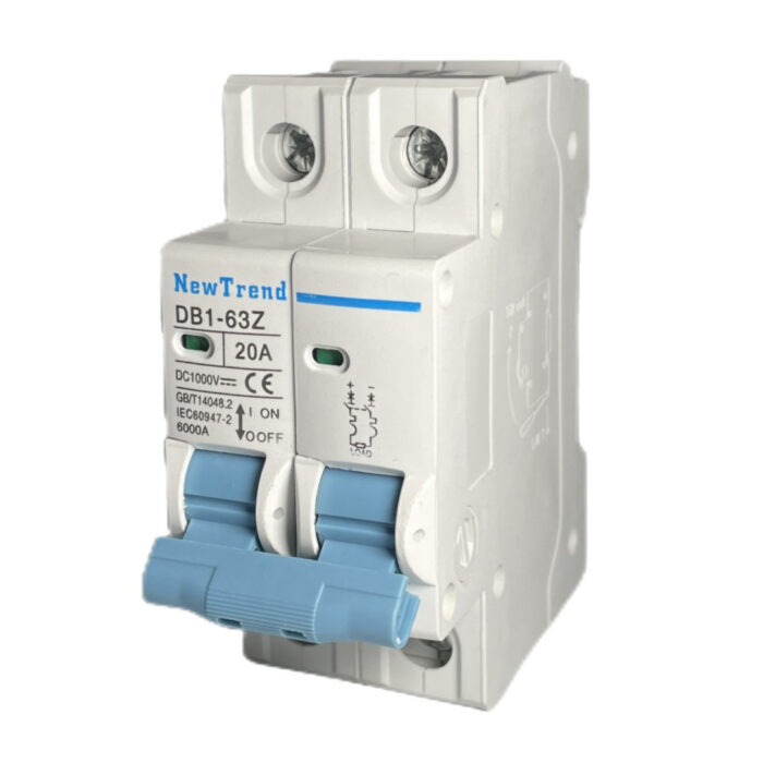 2P DC 1000V Solar Mini Circuit Breaker 1A 2A 3A 4A 6A 10A 16A 20A 25A 32A 40A 50A 63A 2 pole DC MCB for PV System