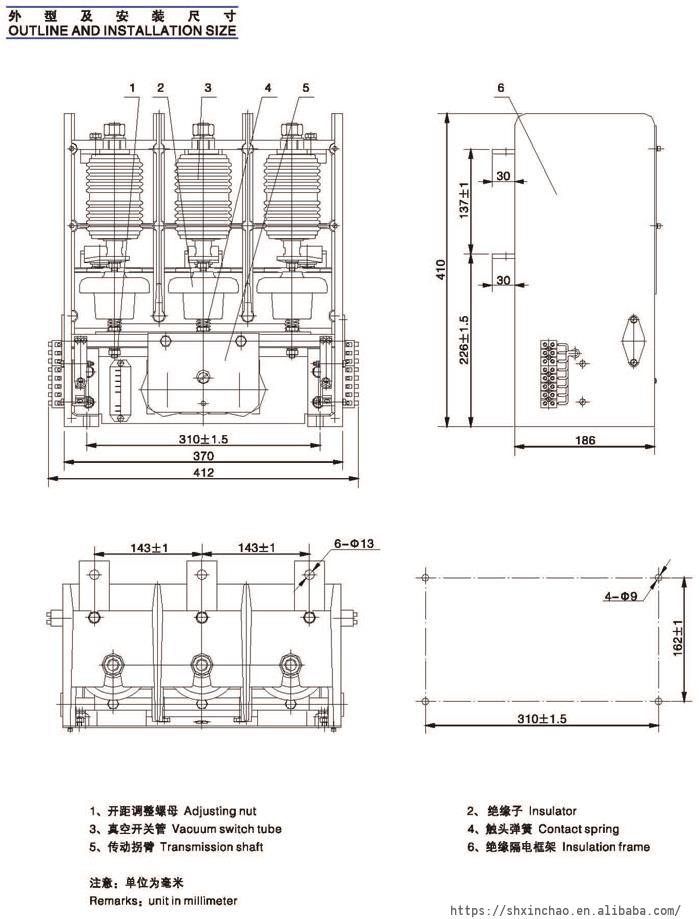 3600V 7200V Vacuum Contactor 160A 250A 400A 630 AC DC control voltage Latched or Non Latched 4NO 3NC 3.6KV 7.2KV Vacuum Contactor