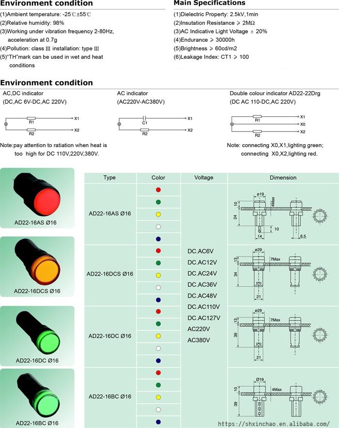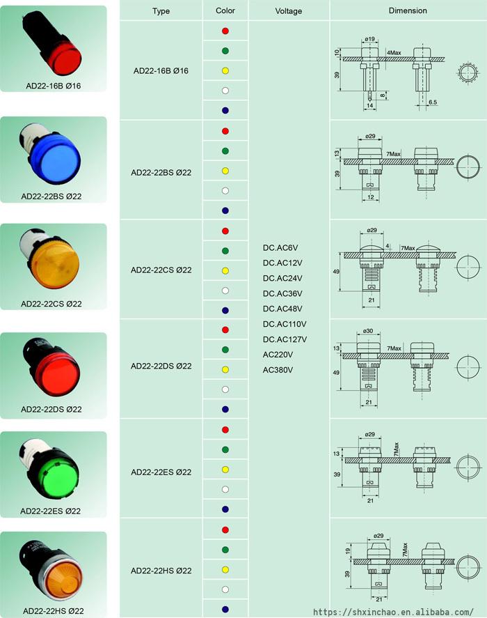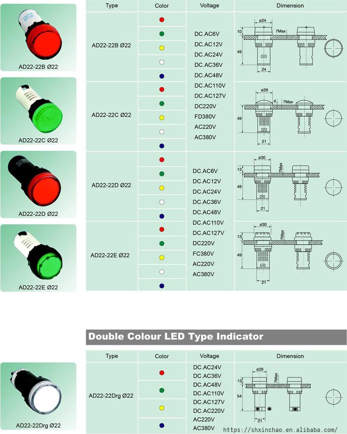 AD22-22CS LED Indicator Light AD108-22CS 24V 110V 220V 240V AC DC 22mm White Red Blue Green Yellow YW unibody LED Pilot Light