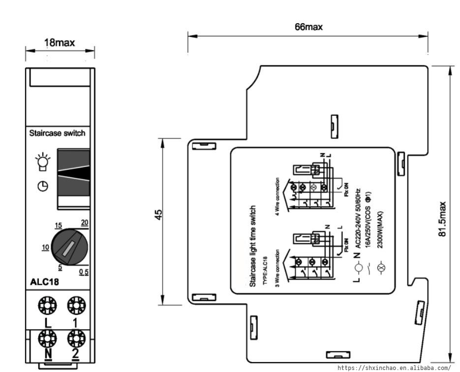 ALC18 ALC18-E 30 second to 20 min 1 module Staircase Light Time Switch 220VAC 16A Din Rail Electronic Staircase Timer