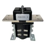 The SW500 features Single pole Single throw, Double breaking main contacts with silver alloy tips, which are weld resistant, hard wearing and have excellent conductivity. The SW500 has M10 stud main terminals and 6.3mm spade coil connections. It can be mounted via M5 tapped holes or mounting brackets – either supplied fitted, or as separate items. Mounting can be horizontal or vertical, when vertical the M10 contact studs should point upwards. If the requirement is for downwards orientation we can adjust the contactor to compensate for this.