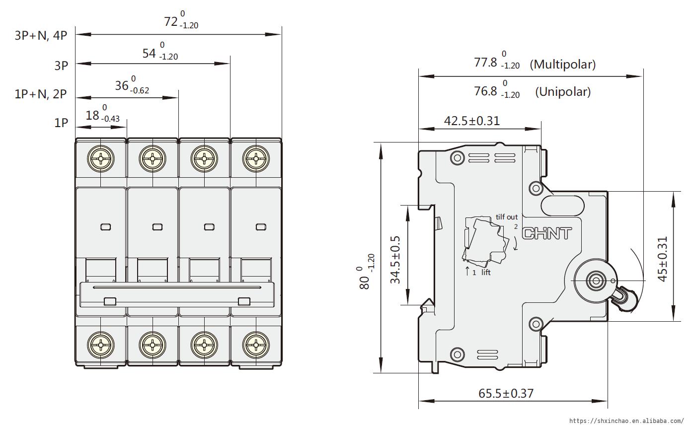 Number of poles: 1P, 1P+N, 2P, 3P, 3P+N, 4P;