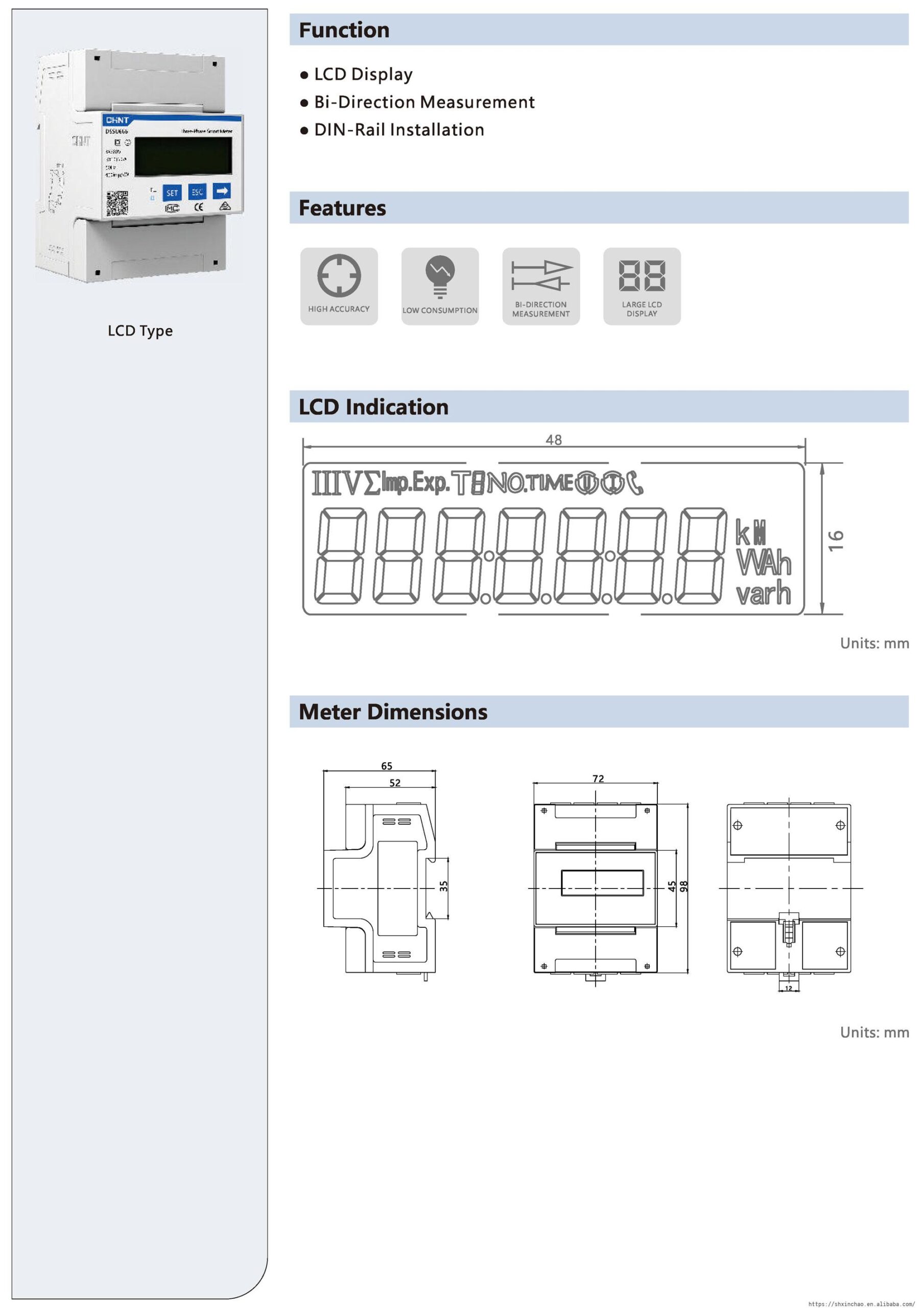 Chint DTSU666 Three-phase energy meter is designed to monitor power and to measure the energy in power systems. It belongs to a generation of programmable intelligent instruments, integrated with monitoring and communication functions. It is mainly thought to be used for real-time measurement and display for electrical parameters such as voltage, current, active power, reactive power, frequency, power factor.
