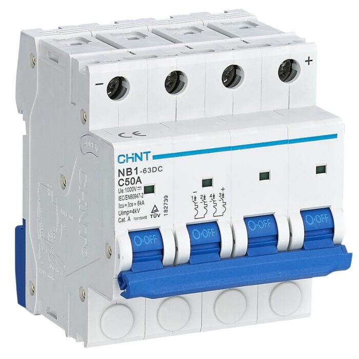 Chint NB1-63DC 1000V 4 Pole DC MCB 10A 16A 25A 32A 40A 50A 63A UL1077 CE certified Solar Miniature Circuit Breaker