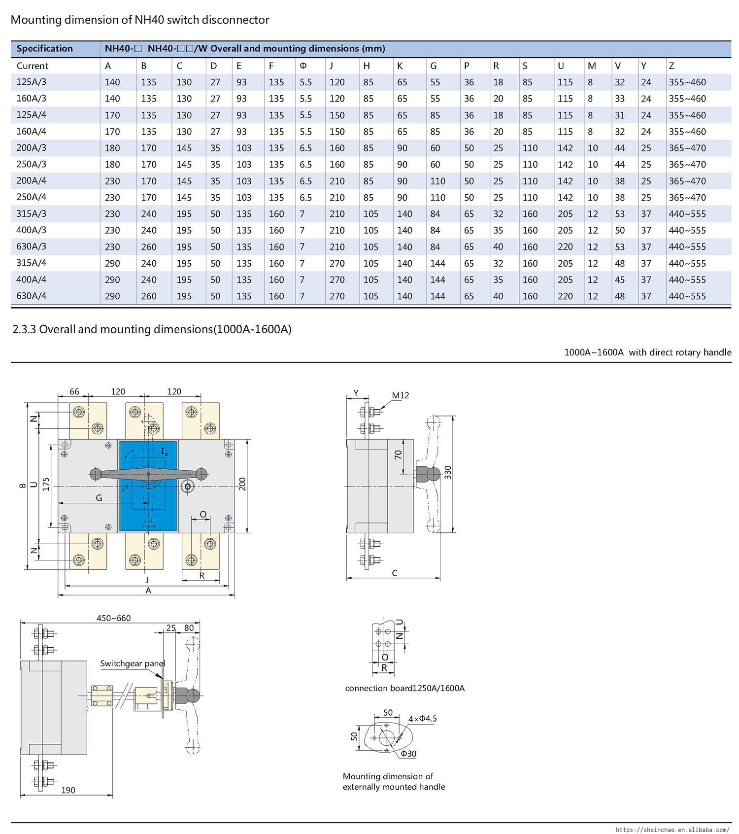 Chint NH40-1250/3 NH40-1250/4 NH40-1600/3 NH40-1600/4 NH40-2000/3 NH40-2000/4 1250A 1800A 2000A CHNT NH40 Switch Disconnector
