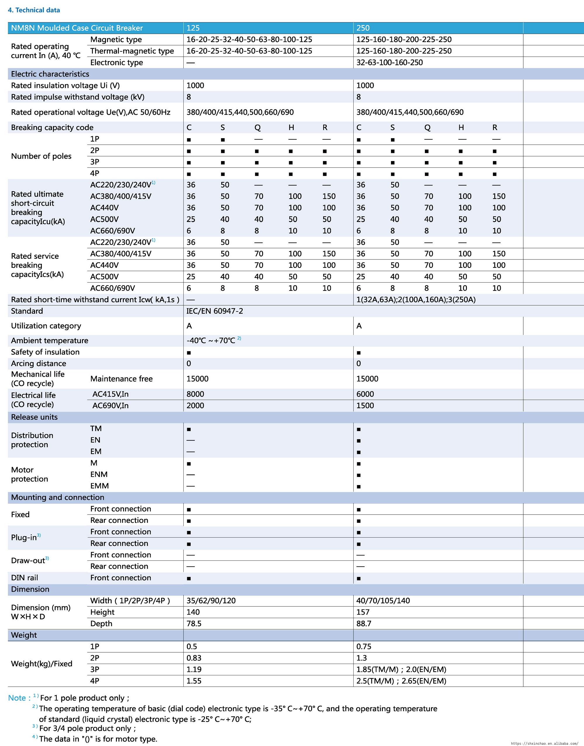 Chint NM8N series moulded case circuit breaker is suitable for the circuit of AC 50/60Hz, with rated voltage AC690V and below, DC system rated voltage DC1000V and below, and rated current of 16A and 1600A. It can protect circuits and electric equipment against overload, short circuit or undervoltage, and can also provide protection of overload, short circuit and under voltage for