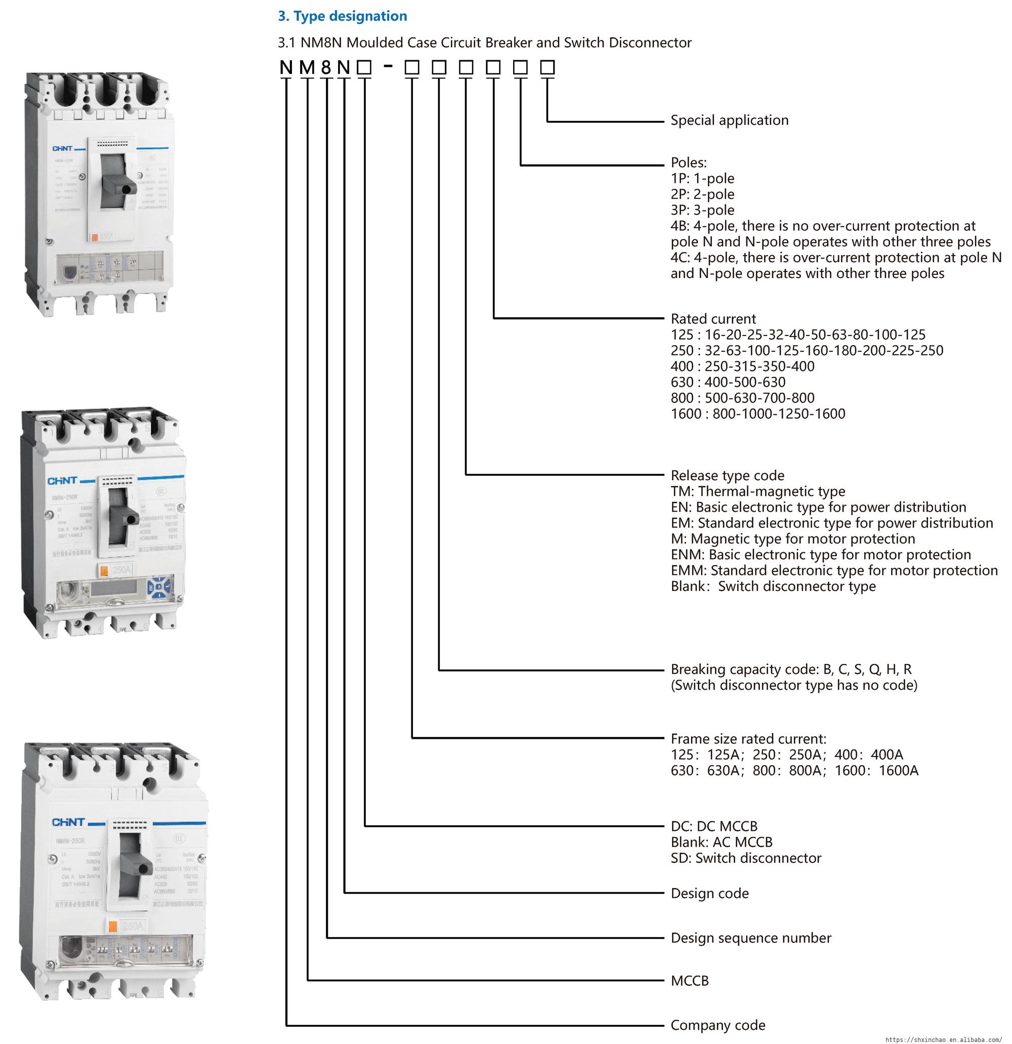 Chint NM8N Molded Case Circuit Breaker NM8N-125S NM8N-250S NM8N-400S NM8N-630S NM8N-800S NM8N-1600S TM EN 1P 2P 3P 4P CHNT MCCB