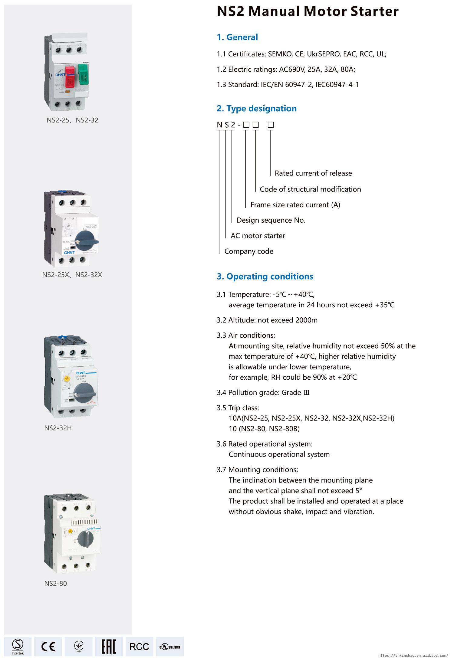 Chint NS2 Motor Protection Circuit Breaker NS2-25 NS2-32 NS2-25X NS2-32X NS2-80 NS2-80B CHNT Guarda Motor Manual Motor Starter