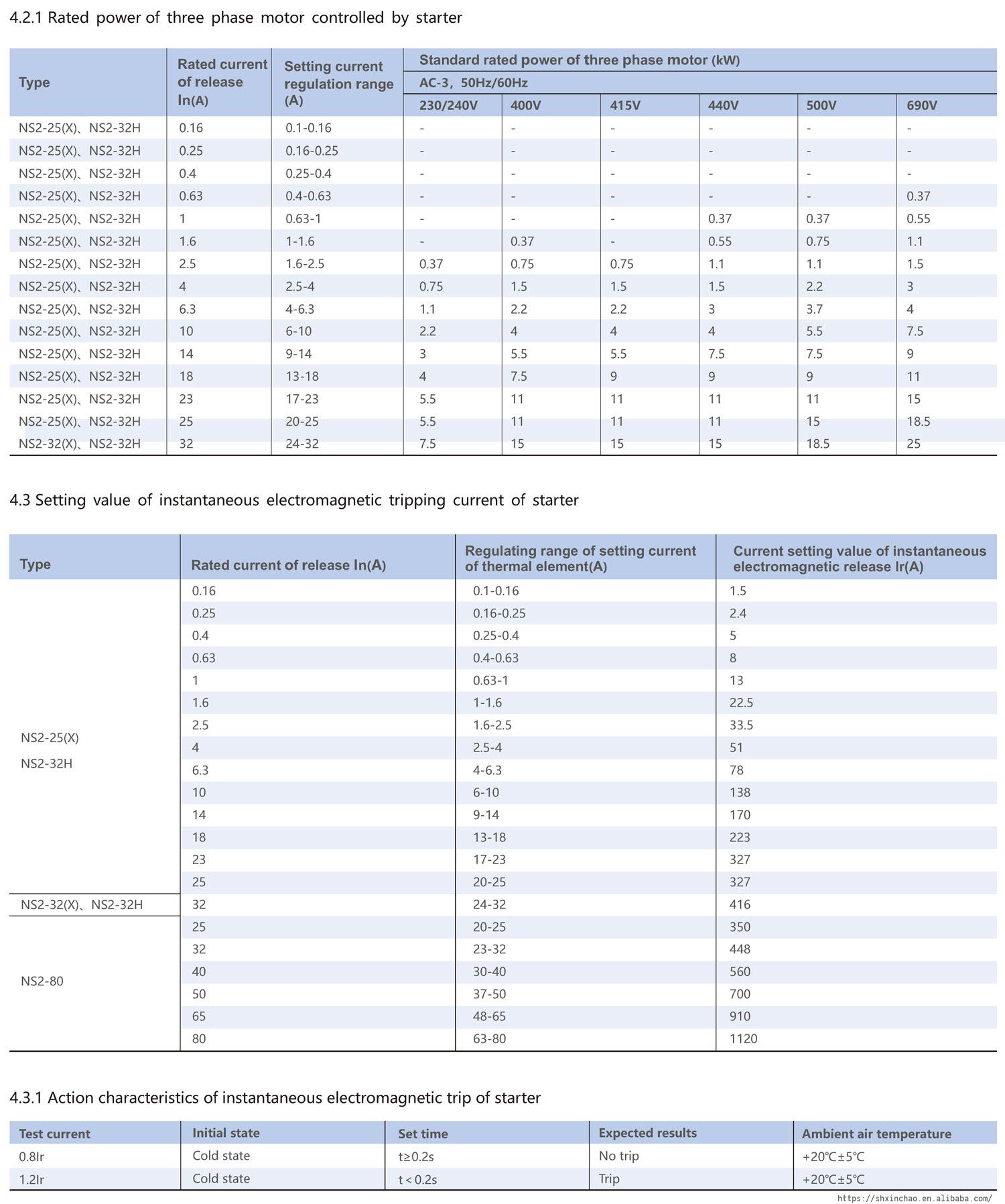 2.2 Standard: IEC/EN 60947-2, IEC60947-4-1