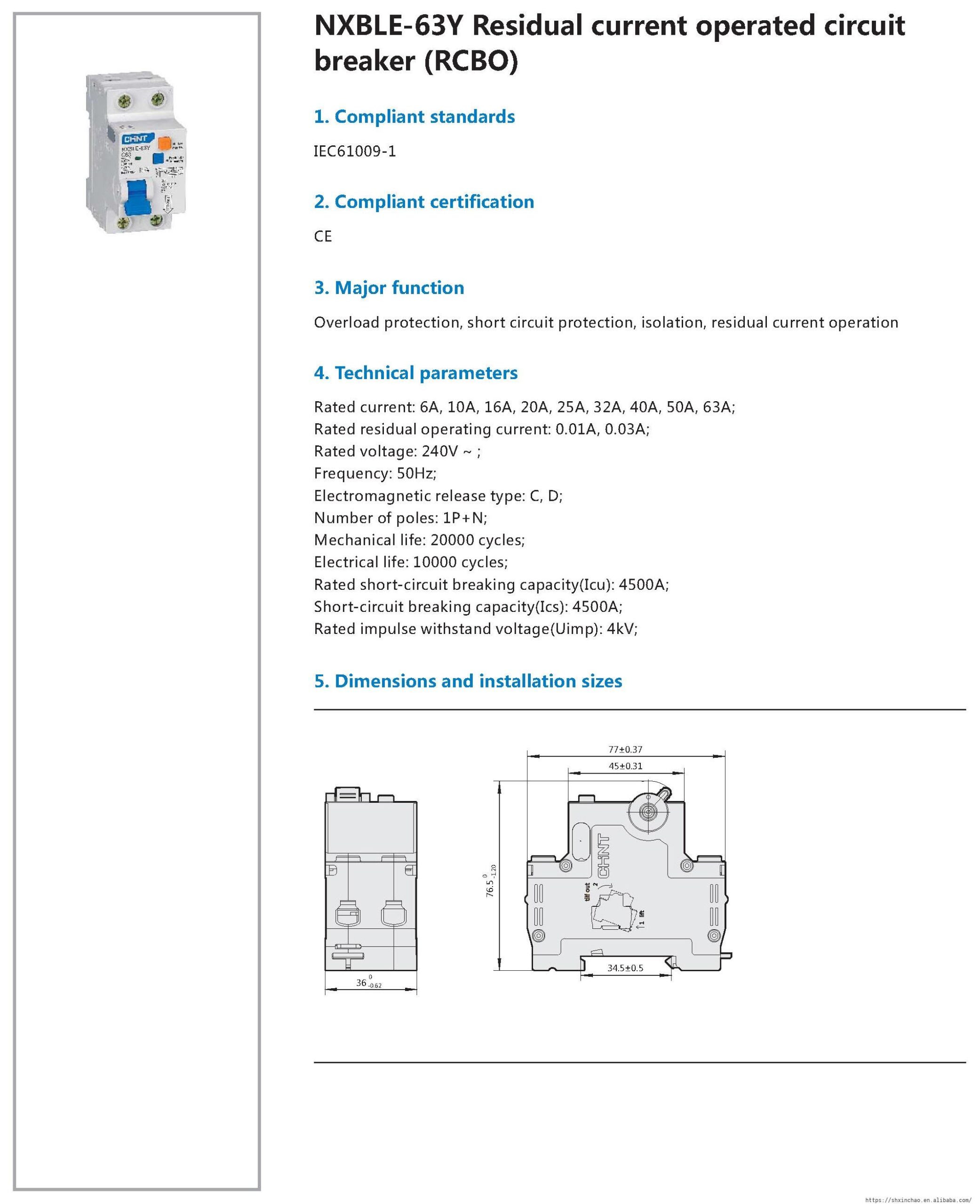 1. Compliant standards: IEC61009-1