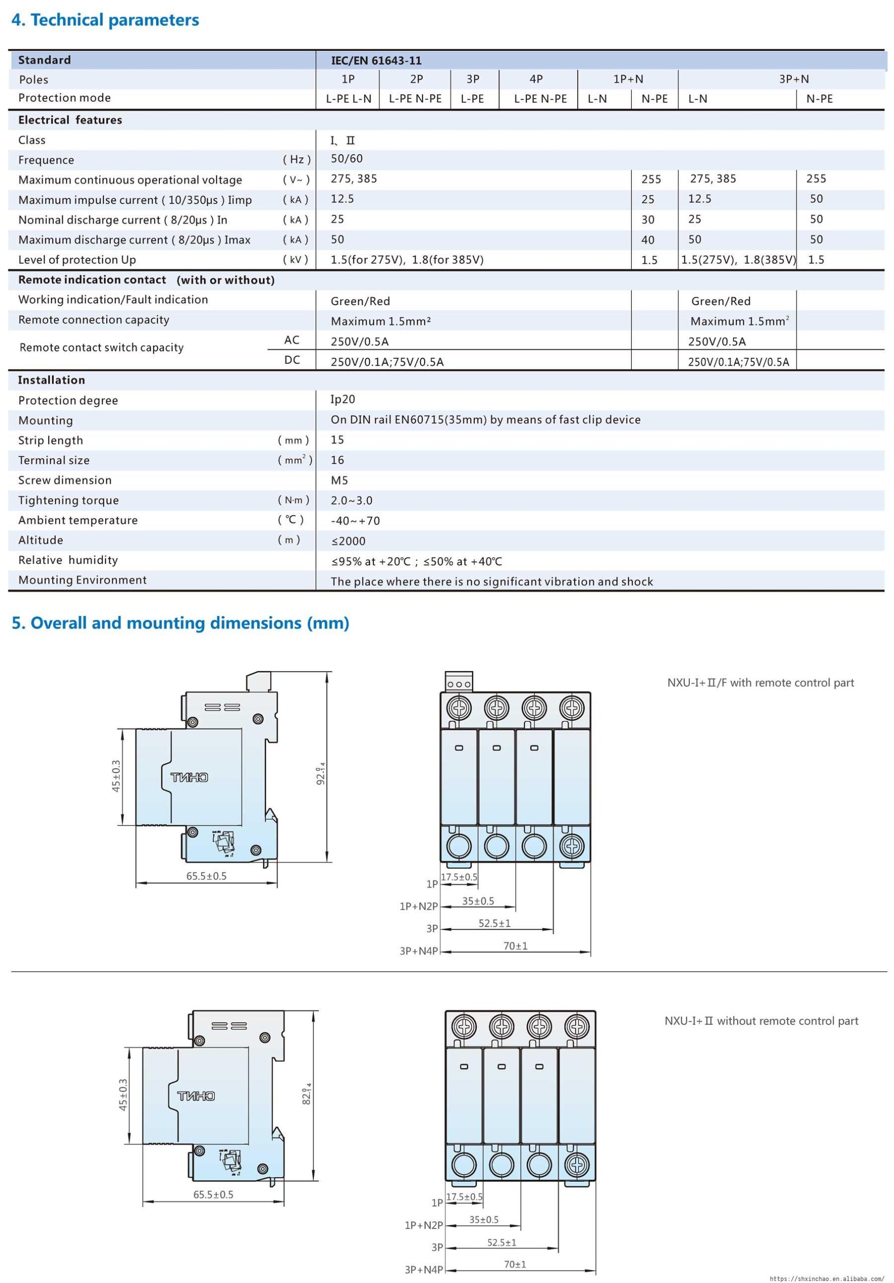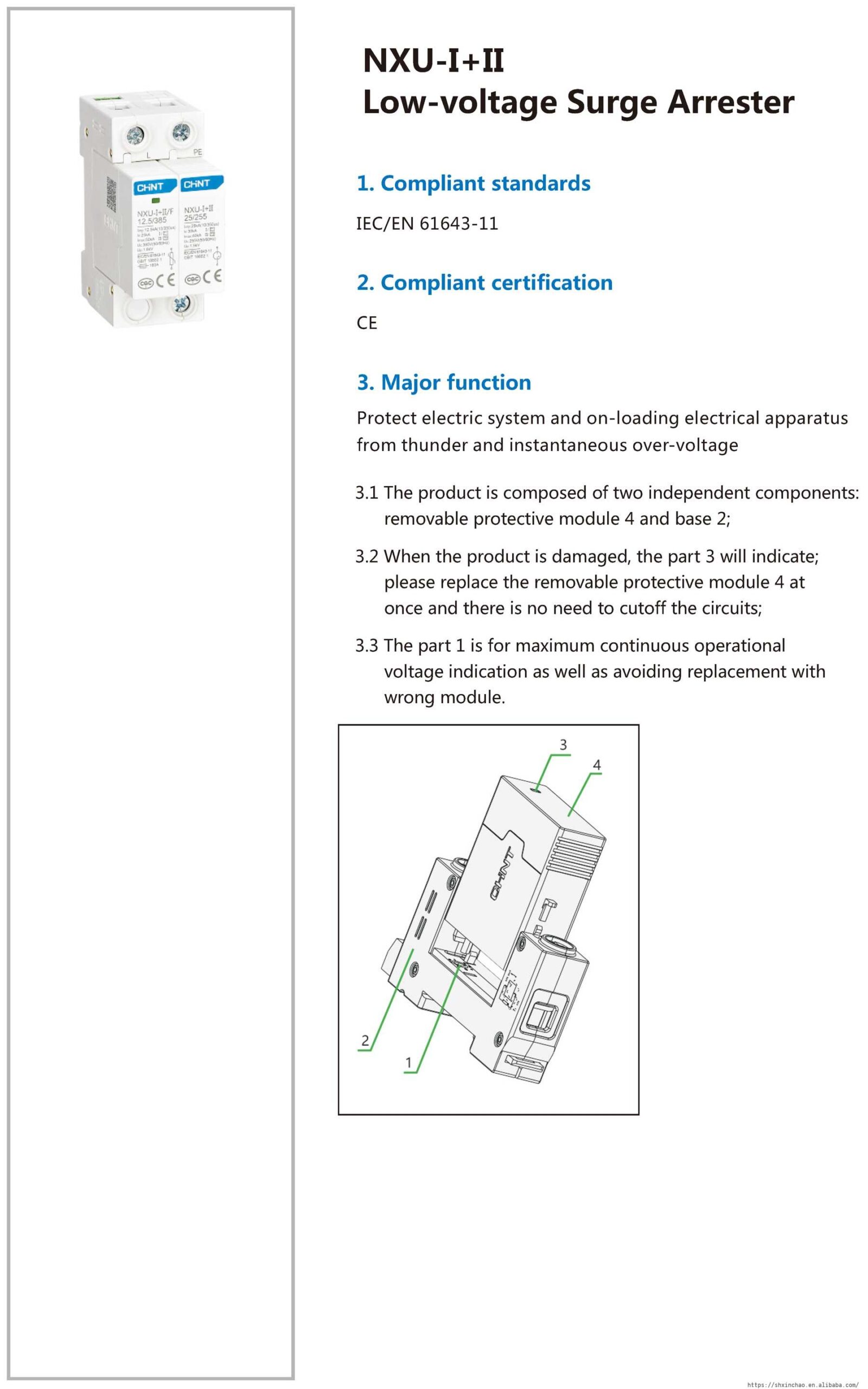 Chint NXU-I+II Surge Protector T1 T2 Type 1 and 2 Type B and C Class I and II 40kA 50kA 1P 2P 3P 4P CHNT Surge Arrester