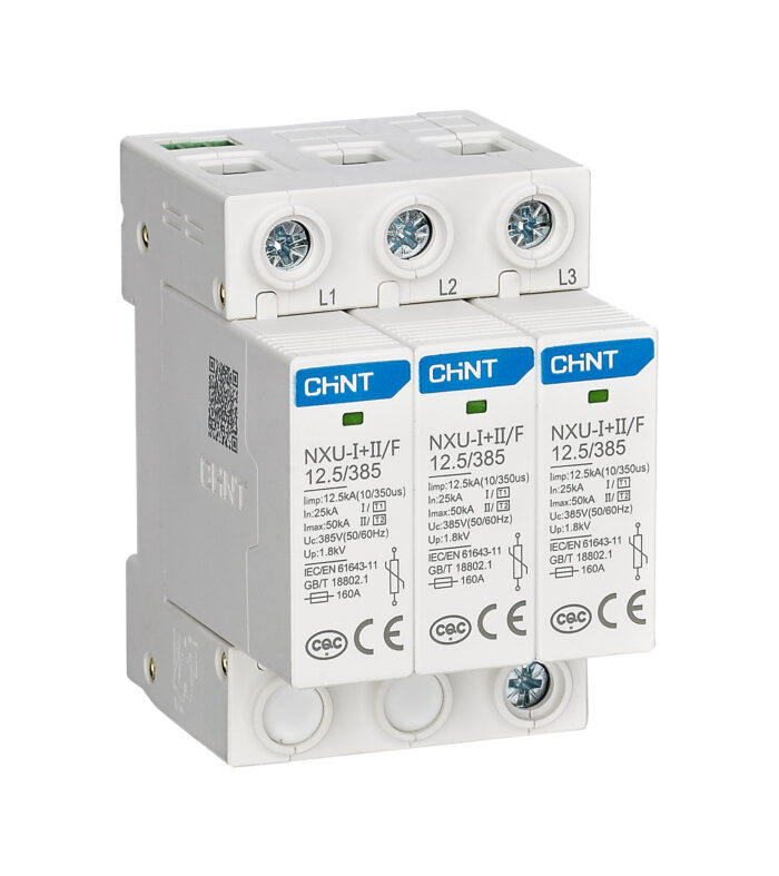 Chint NXU-I+II Surge Protector T1 T2 Type 1 and 2 Type B and C Class I and II 40kA 50kA 1P 2P 3P 4P CHNT Surge Arrester