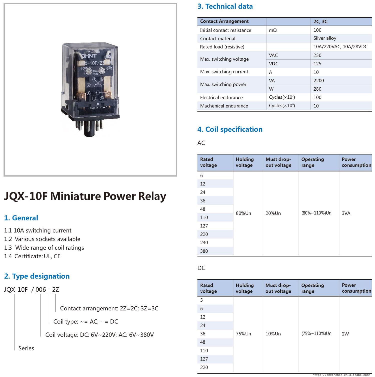 Chint CHNT original JQX-10F JQX-10F/2Z JQX-10F/3Z 10A 2Z 3Z 2C 3C AC DC 6V 12V 24V 36V 48V 110V 127V 220V 380V Miniature Power Relay
