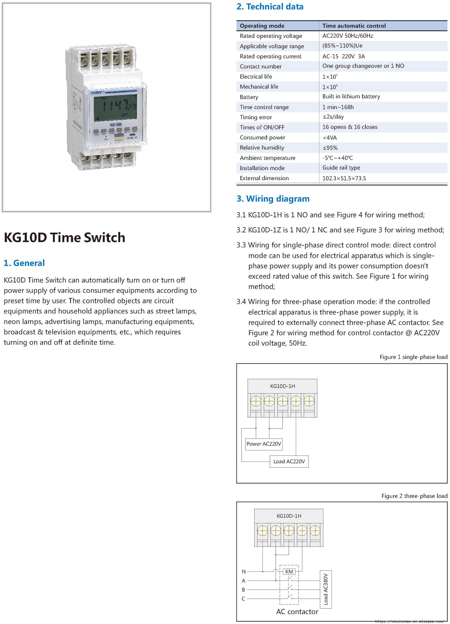 KG10D Time Switch can automatically turn on or turn off power supply of various consumer equipments according to preset time by user. The controlled objects are circuit equipments and household appliances such as street lamps, neon lamps, advertising lamps, manufacturing equipments, broadcast & television equipments, etc., which requires turning on and off at definite time.