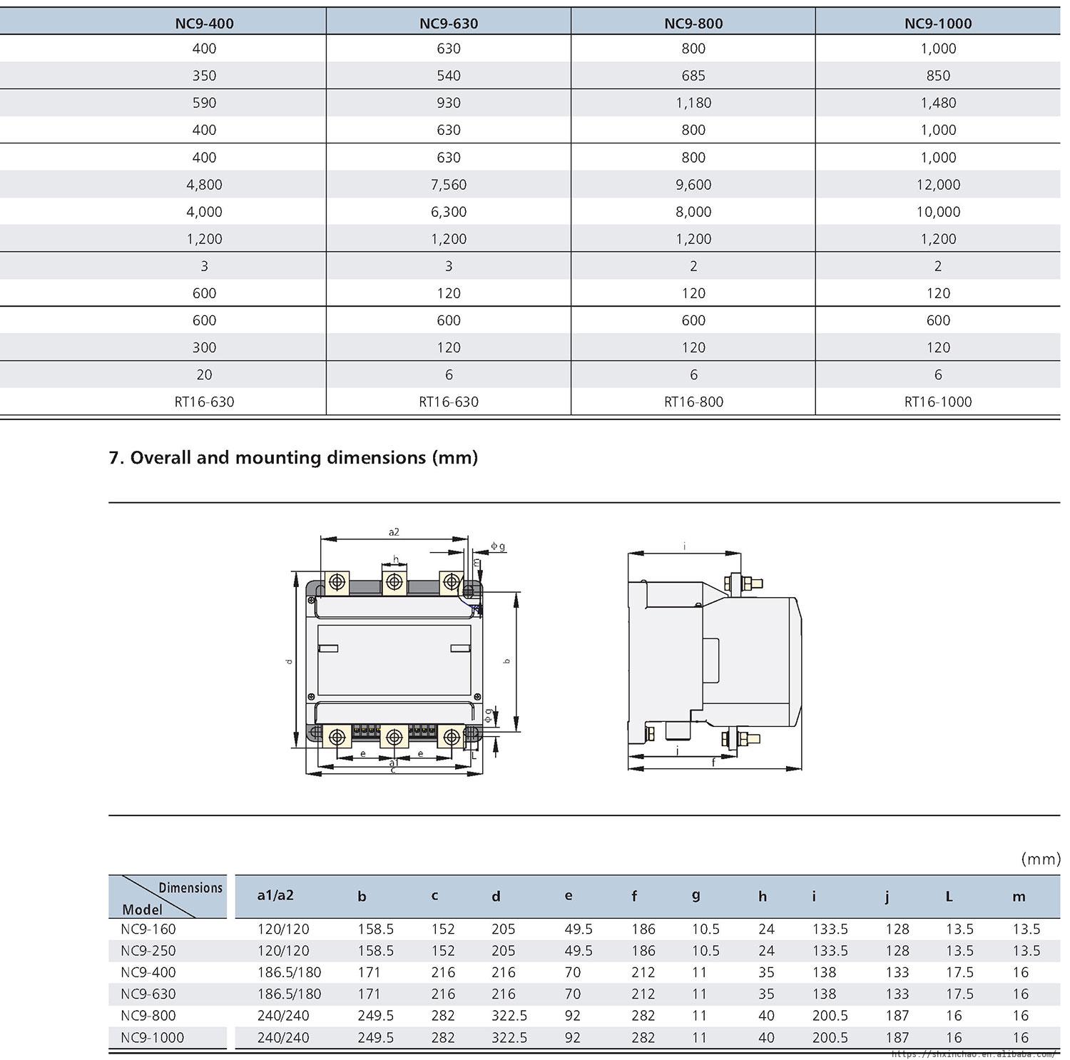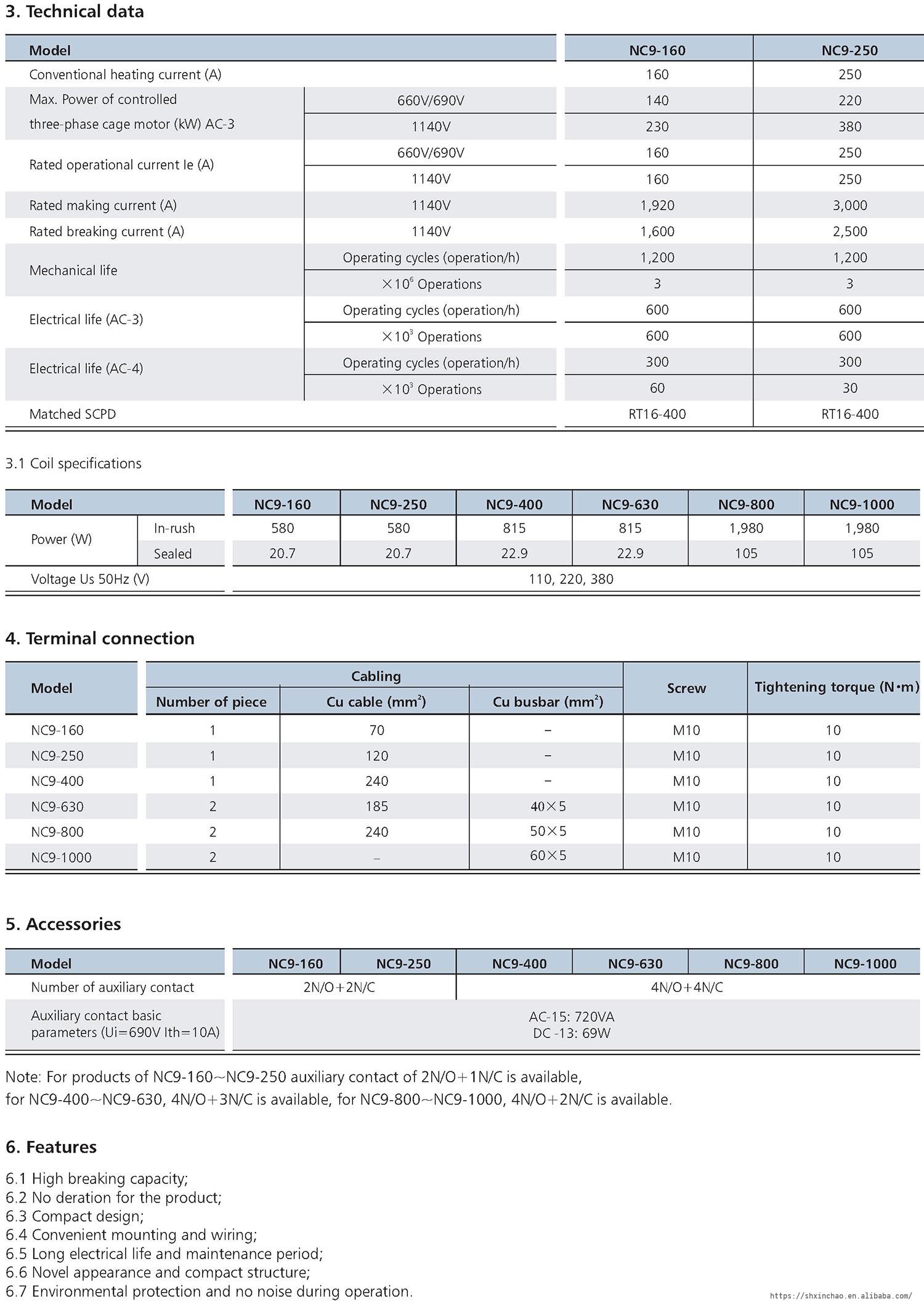 1.2 Electrical ratings: AC50Hz, up to 1,140V, up to 1,000A;