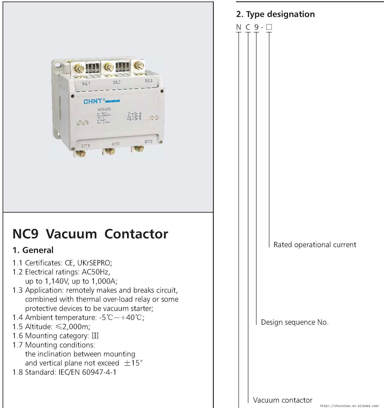 Chint original NC9 NC9-160 NC9-250 NC9-400 NC9-630 NC9-800 NC9-1000 160A 250A 400A 630A 800A 1000A CHNT Vacuum Contactor