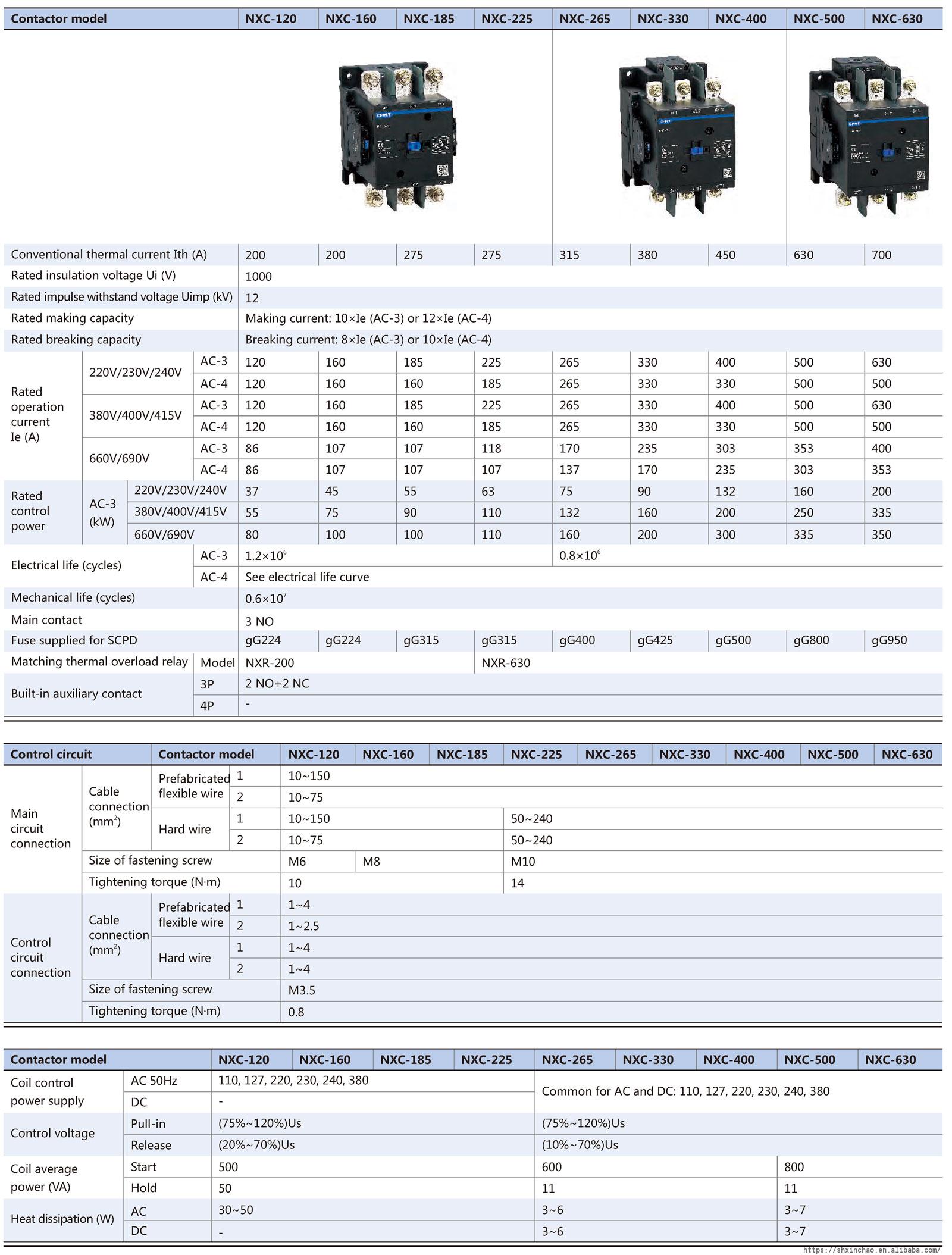 Rated insulation voltage: 690V (NXC-06M~100), 1000V (NXC-120~630)