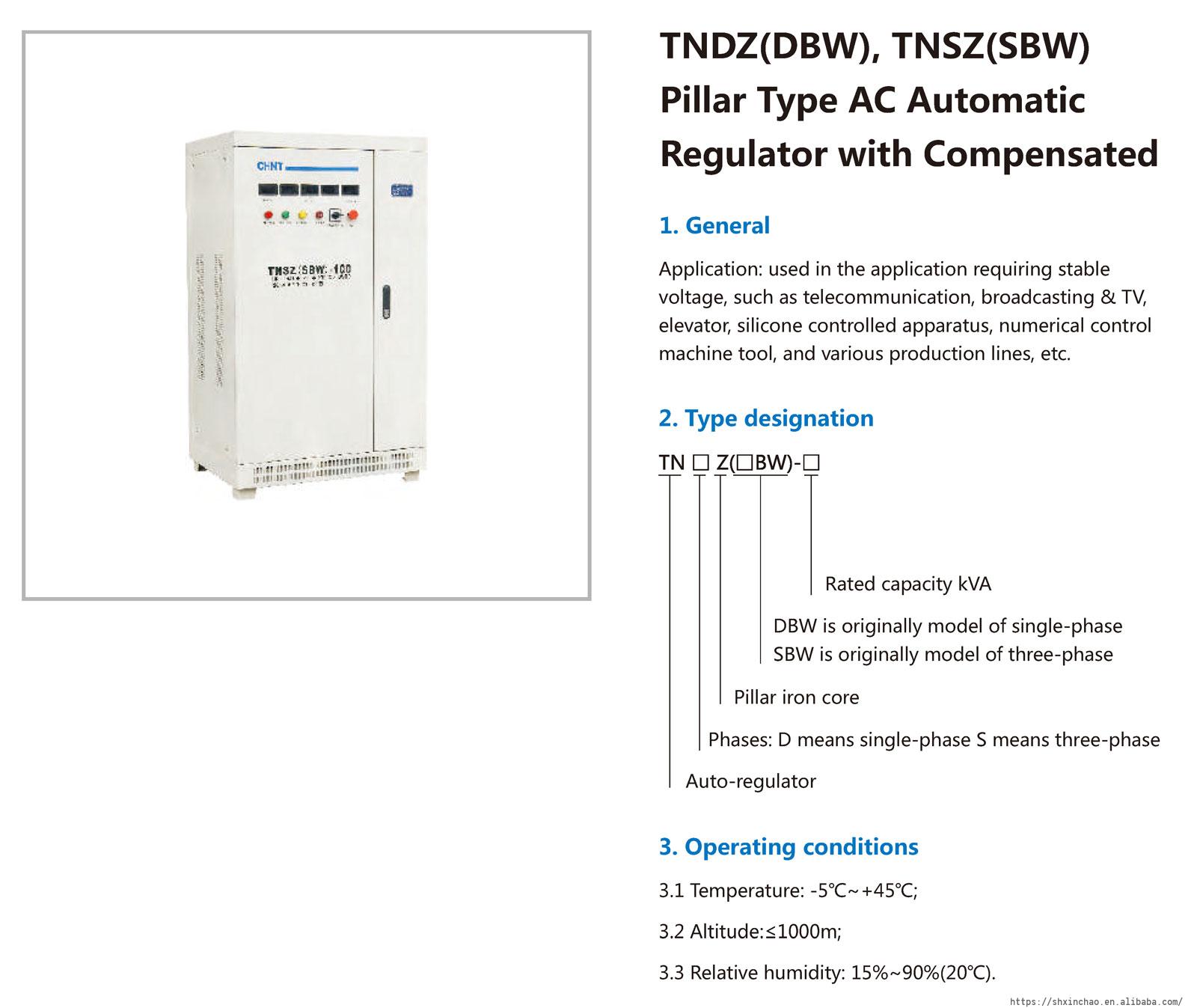 Chint TNDZ(DBW), TNSZ(SBW) Pillar Type AC Automatic Regulator with Compensated