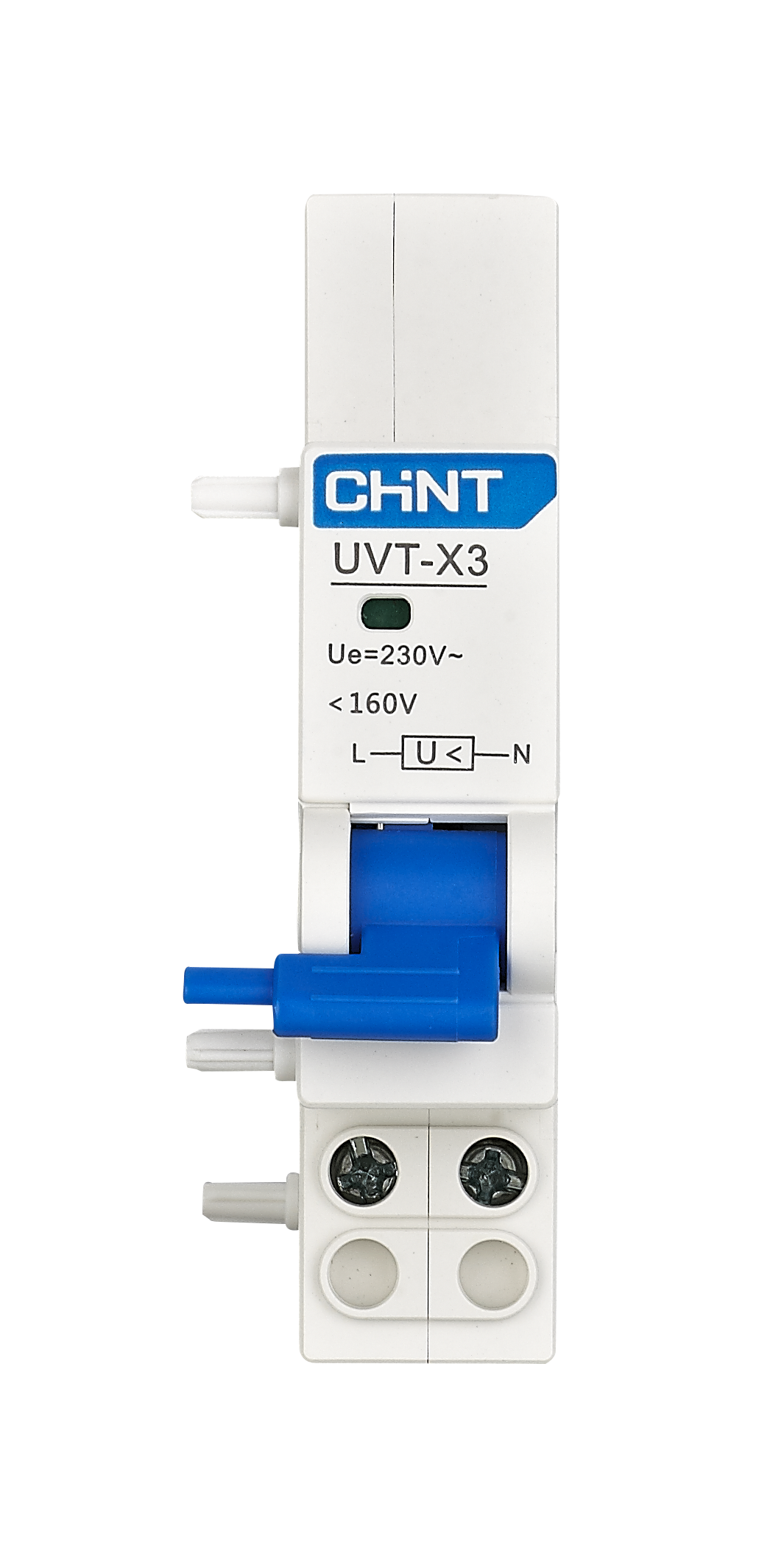 The CHINT UVT-X3 Under Voltage Release for NXB-125 MCB Accessories is a self-recovery overvoltage and undervoltage protector designed to protect household appliances and electrical equipment from damage caused by abnormal grid voltages. When voltage exceeds safe limits (typically >275V or <160V), the device automatically disconnects power and reconnects when normal voltage returns.