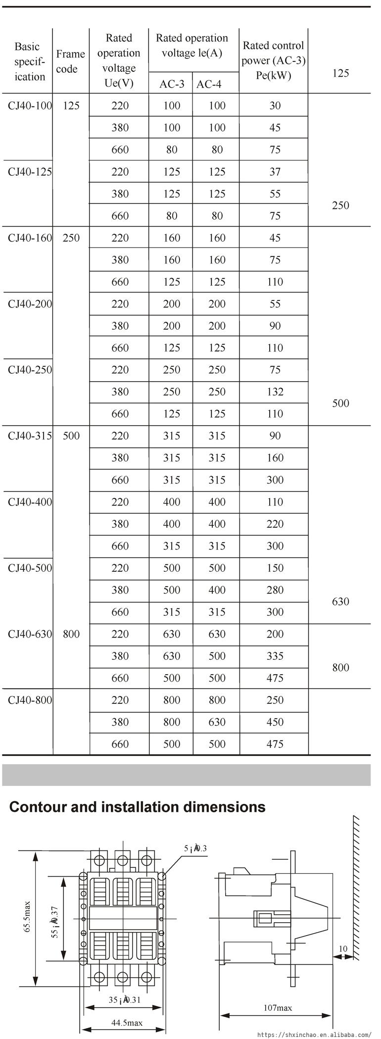 CJ40-63 CJ40-80 CJ40-100 CJ40-160 CJ40-200 CJ40-250 CJ40-315 CJ40-400 CJ40-500 CJ40-630 CJ40-800 CJ40-1000 CJ40 AC Contactor