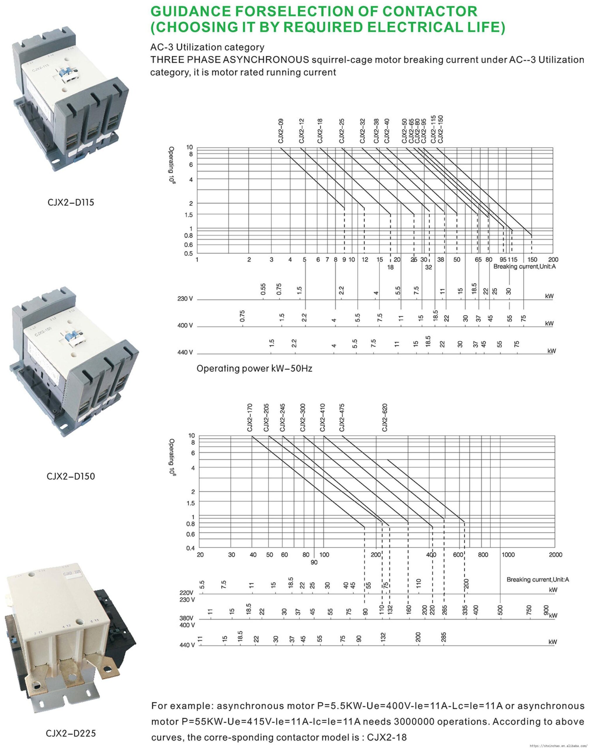 CJX2 series AC contactor(hereinafter to be referred as contactor), it mainly applies to the circuit of AC 50Hz/60Hz, and rated insulation voltage 660V. When used in AC-3, and rated operational voltage is 380V, rated current up to 620A, for long distance breaking circuit and frequently starting or control the motor. Combined with proper thermal overload relay can protect load