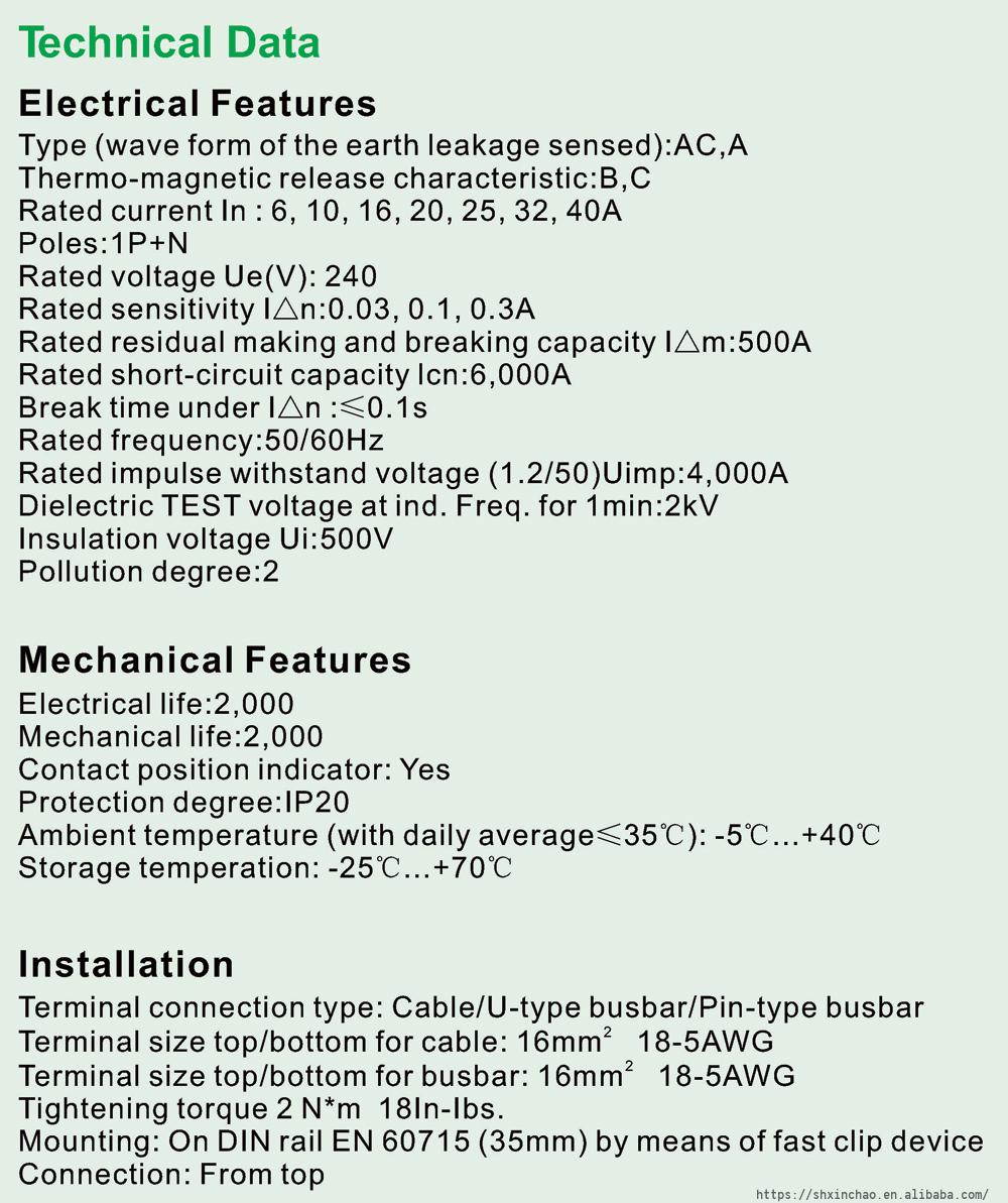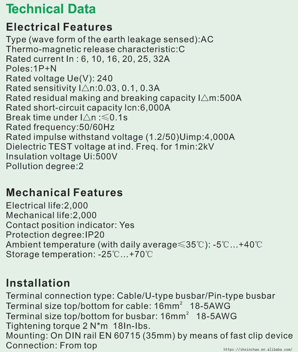 DPN RCBO 6KA Type C and B 6A 10A 16A 20A 25A 32A 40A 18mm 1P+N RCBO Residual Current Circuit Breaker with Overcurrent protection
