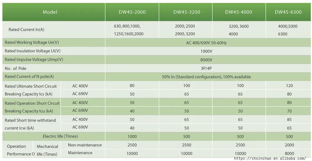 DW45 series Intelligent Air Circuit Breaker is extensively used as the main switch in the low voltage distribution switchboard of rated voltage of 400V and 690V, rated current of 630A to 6300A, 50HZ or 60HZ. Its function is to control and protect the electr ical circuit from damage and prevent power equipments from harm of overload, under-voltage, short circuit and single phase earth etc. Provide with intelligent protecting function and precise selective protection, breaker can enhance the dependability of power supply and avoid unwanted power cut. It comply with IEC60947-2 standard.