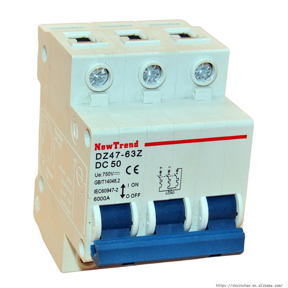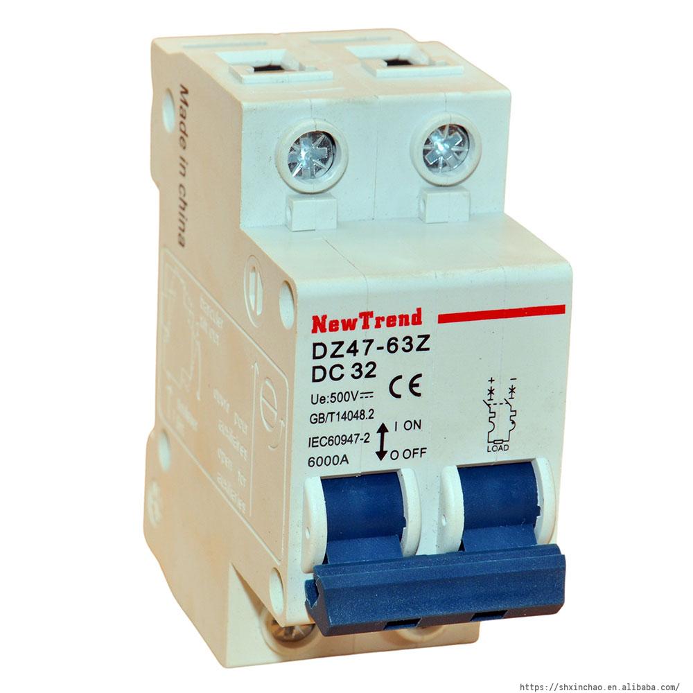 DZ47-63Z DC MCB 6A 10A 16A 20A 25A 32A 40A 50A 63A 1P 2P 3P 4P 48VDC 60VDC 250VDC 500VDC 750VDC 1000VDC DC Mini Circuit Breaker