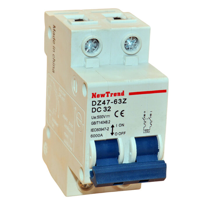 DZ47-63Z DC MCB 6A 10A 16A 20A 25A 32A 40A 50A 63A 1P 2P 3P 4P 48VDC 60VDC 250VDC 500VDC 750VDC 1000VDC DC Mini Circuit Breaker