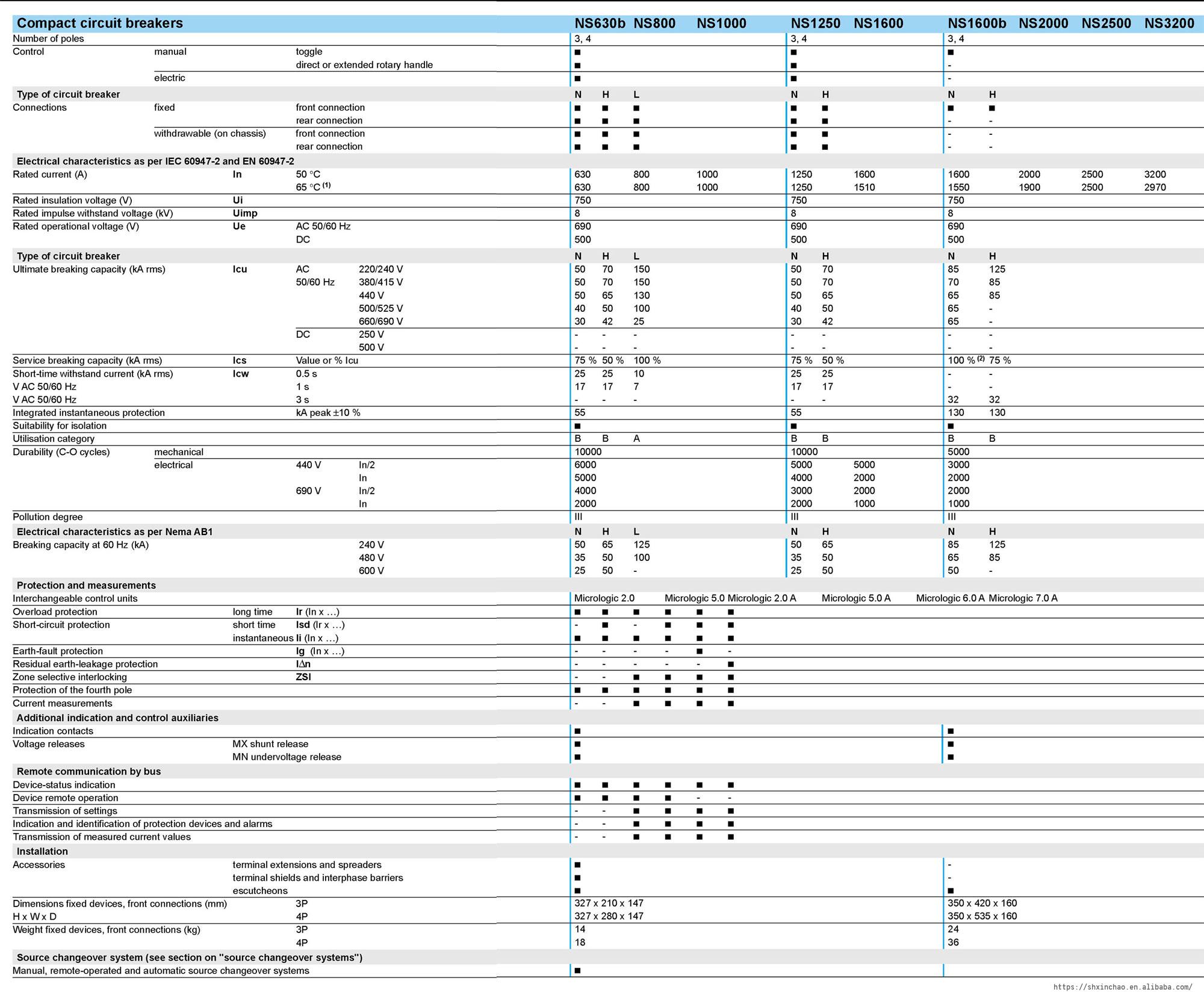 Home Circuit Breaker & Fuses MCCB Circuit Breaker Electrically motor operated 3P 4P Compact NS630N NS800N NS1000N NS1250N NS1600N 800A 1000A Circuit Breaker with Micrologic unit