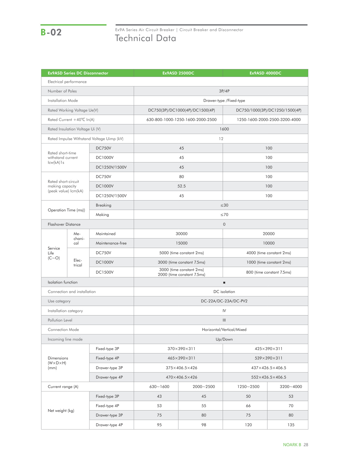 Rated Voltage (Ue) DC 750V / 1000V / 1500V