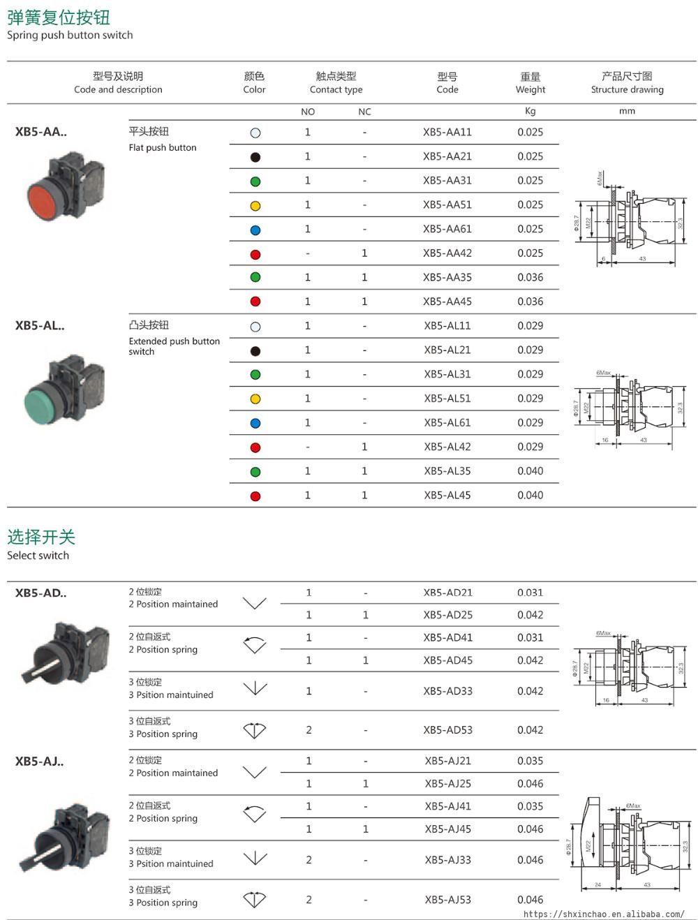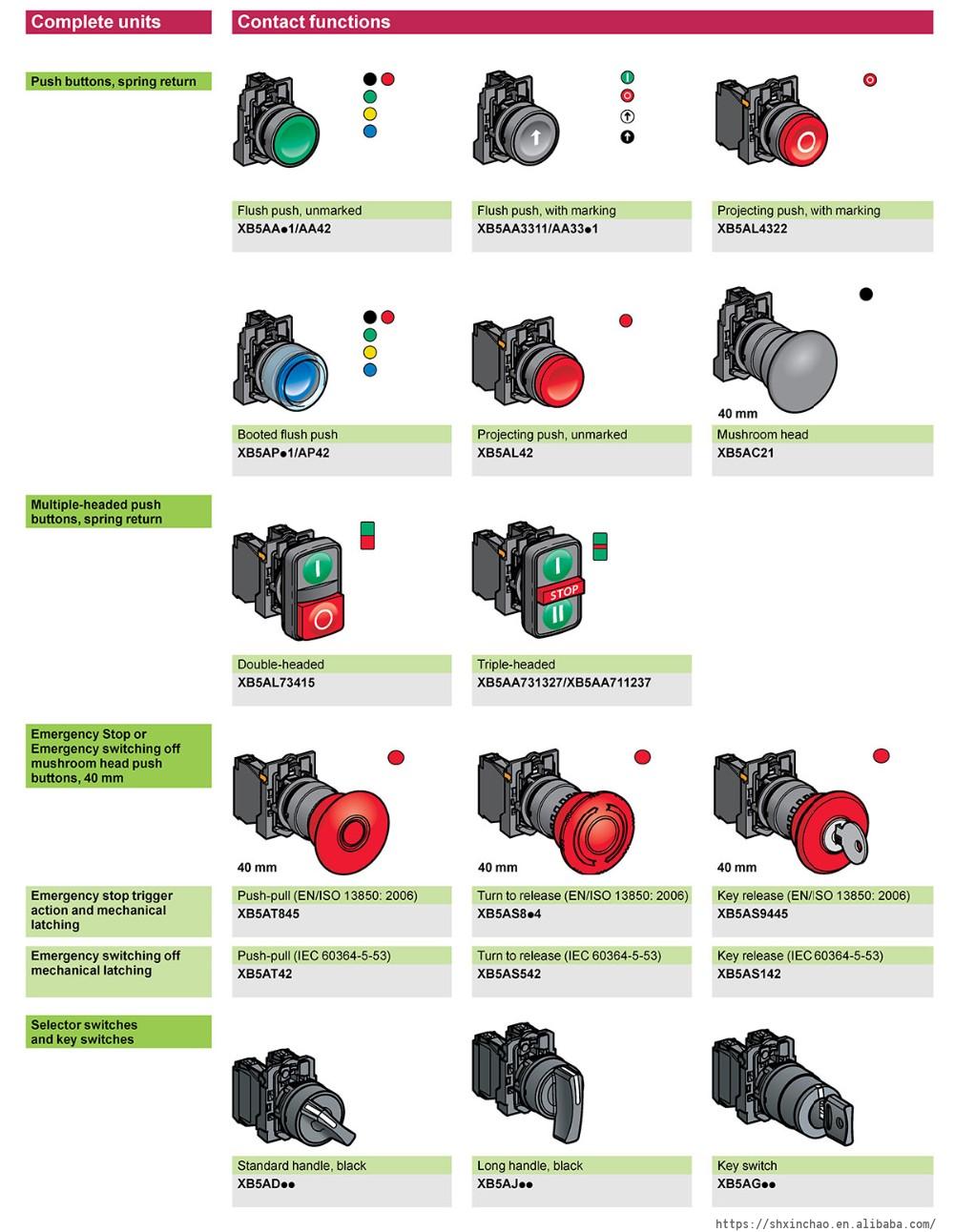 Flat push button switch Plastic XB5AA11 XB5AA21 XB5AA31 XB5AA51 XB5AA61 XB5AA42 XB5AA35 XB5AA45 Spring Return XB5 Pushbuttons