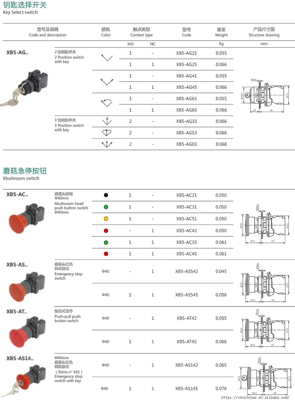 | XB5AC21 | Black | 1NO | Mushroom head | |