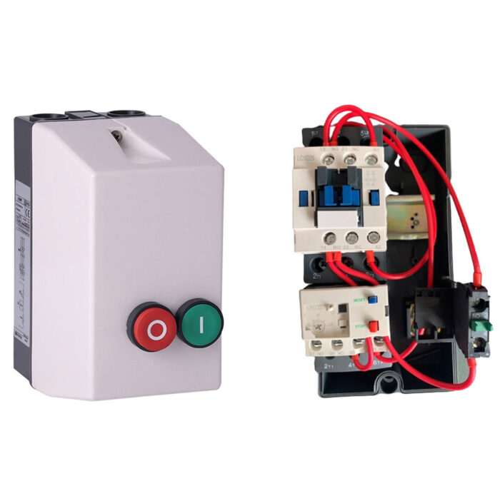 –  ON/OFF motor starters: 1-way rotation control of 3-phase motor, by green & red pushbuttons