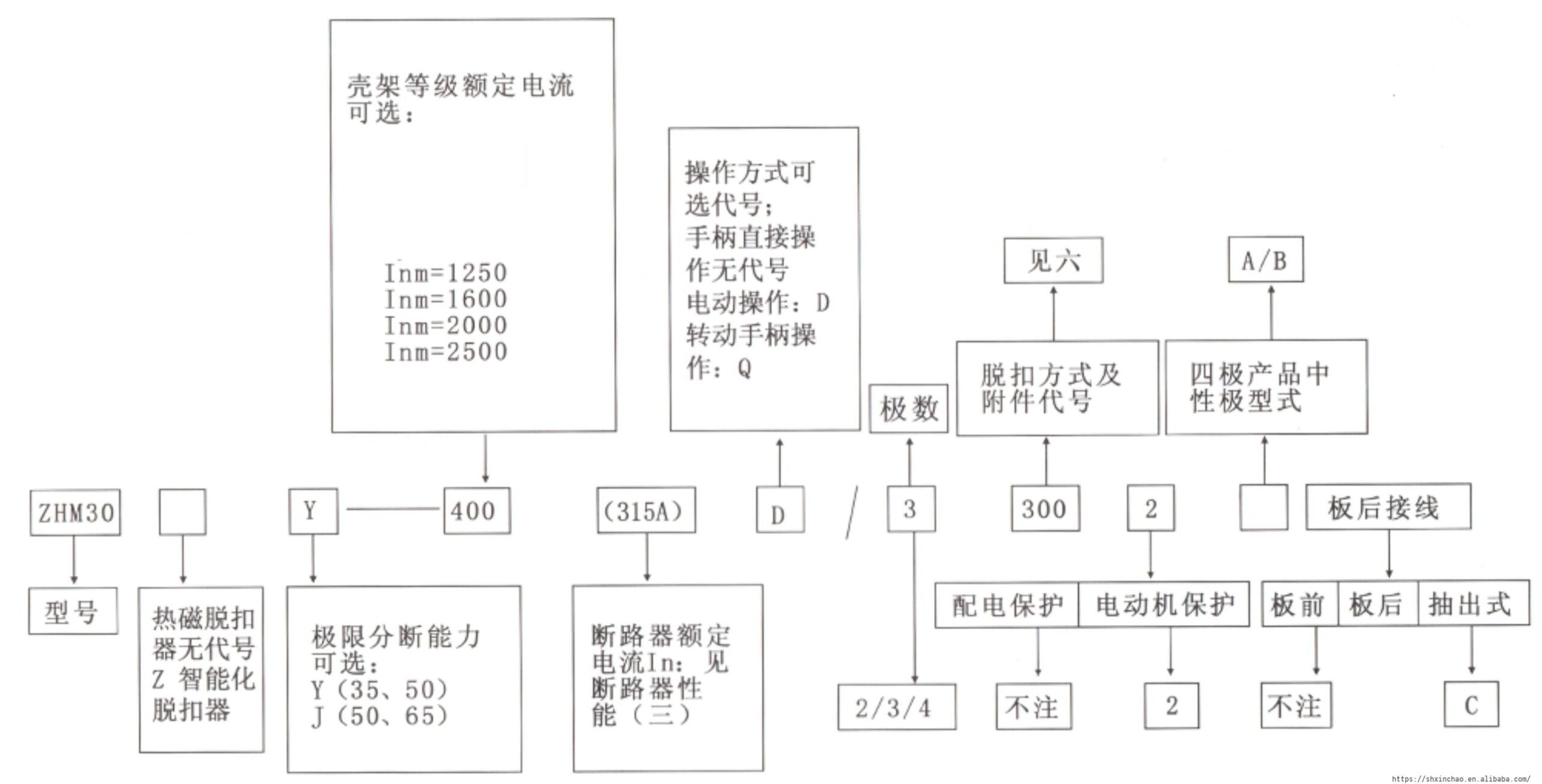 ZHM30 series molded case circuit breaker is a new type of intelligent circuit breaker, rated insulation voltage 800V, suitable for AC 50Hz, its rated working voltage is below 660V, and the rated working current is 1000A to 4000A for infrequent switching in circuits. In addition to the characteristics and functions of the magnetic type, it also has operating current light column indicators, pre-alarm indicators, overload indicators, etc.; it has self-diagnosis and test functions; the transformer in the intelligent circuit breaker can provide self-generated power. It can reliably realize the characteristics of long delay, short delay and instantaneous protection; it also has thermal memory function and grounding protection (four-pole) function.