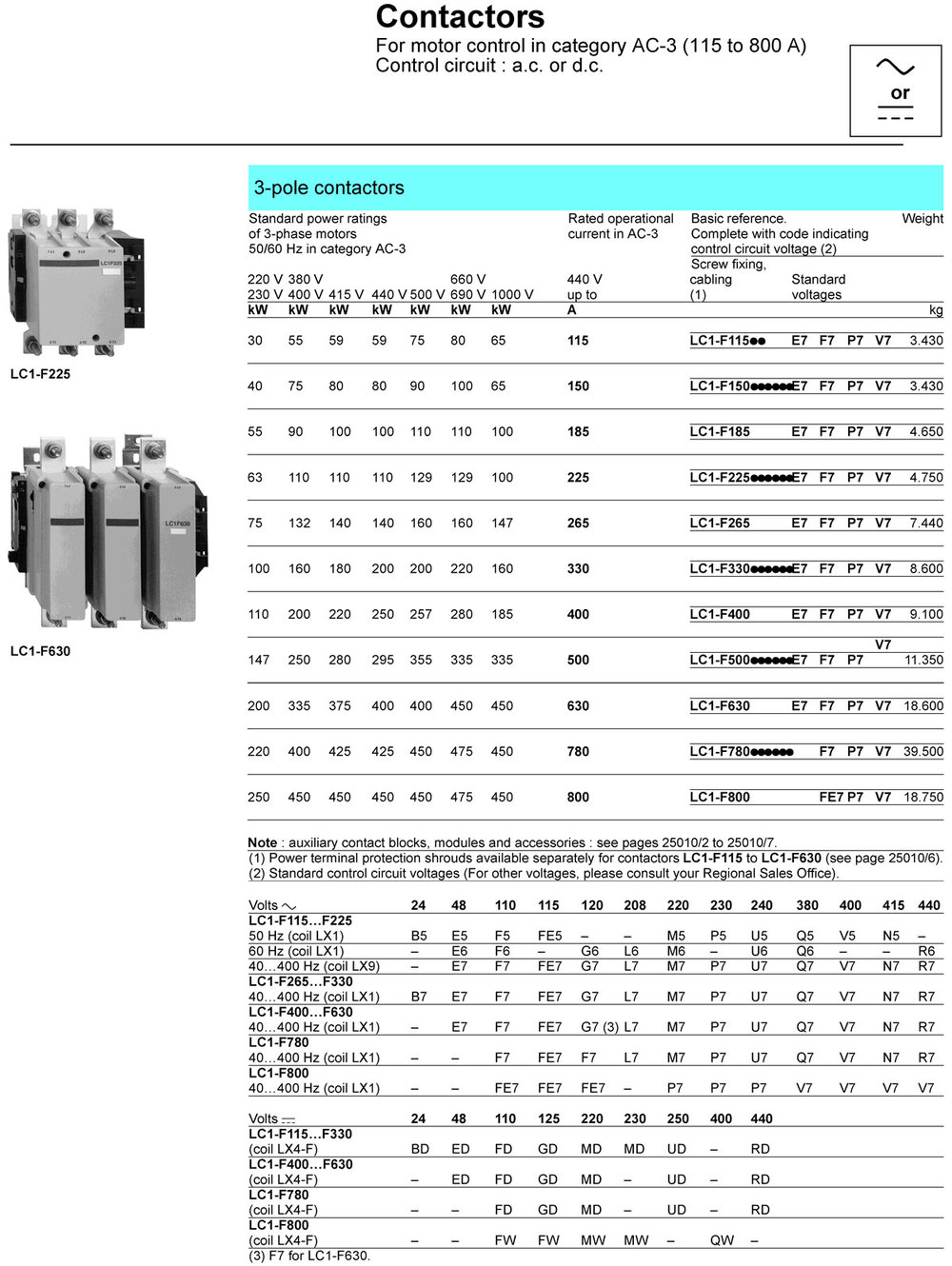 Coil Voltage 24Vdc 48Vdc 110Vdc 125Vdc 220Vdc 230Vdc 250Vdc 400Vdc 440Vdc