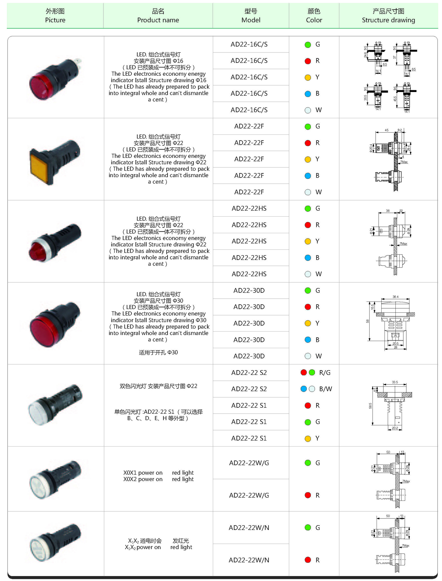 LED Pilot lamp AD16 AD22 AC DC 6V 12V 24V 48V 110V 220V 380V 22mm AD16-22DS AD22-22DS Signal Indication LED Indicator Lamp