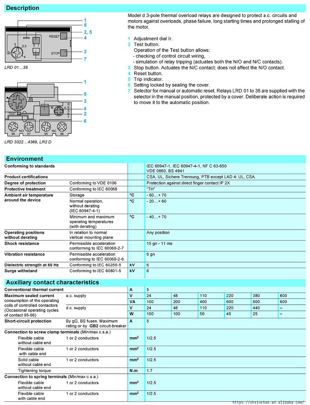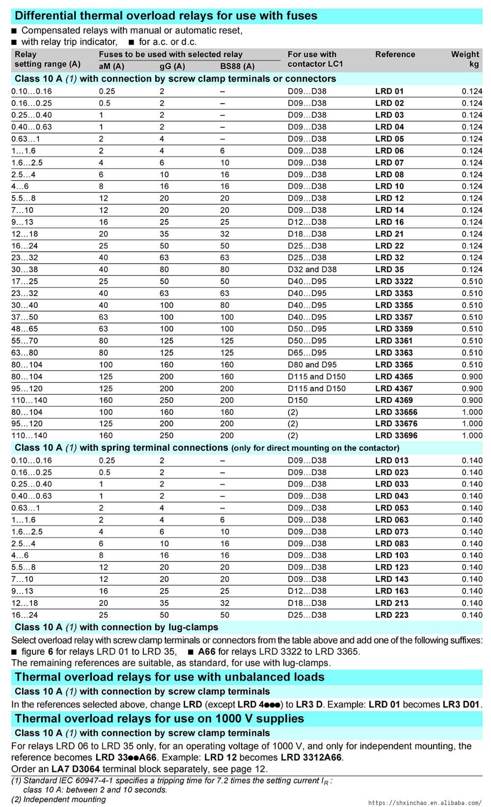 LRD07 LRD10 LRD12 LRD14 LRD21 LRD32 LRD33 LRD3353 LRD3363 LRD43 LRD Thermal Overload Relay