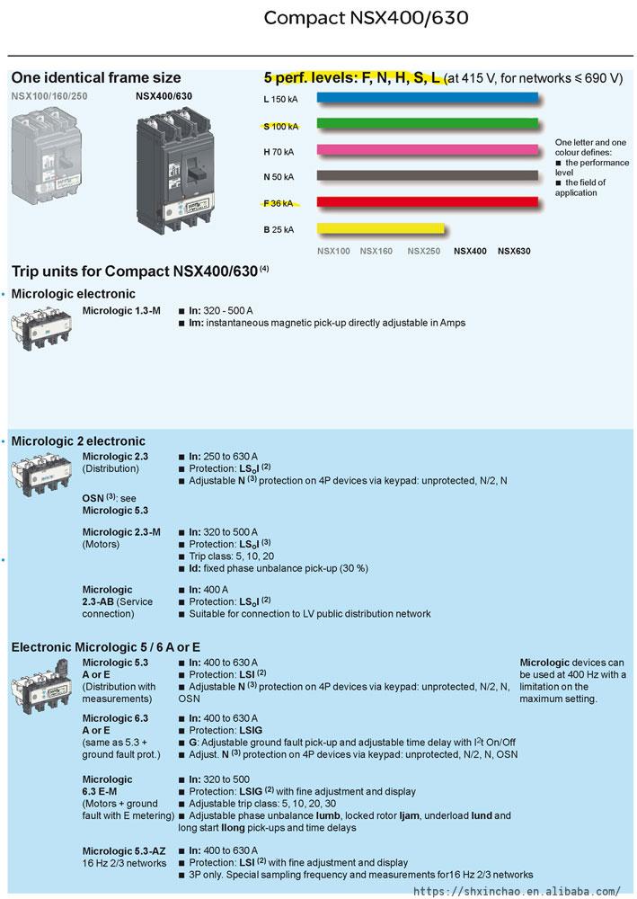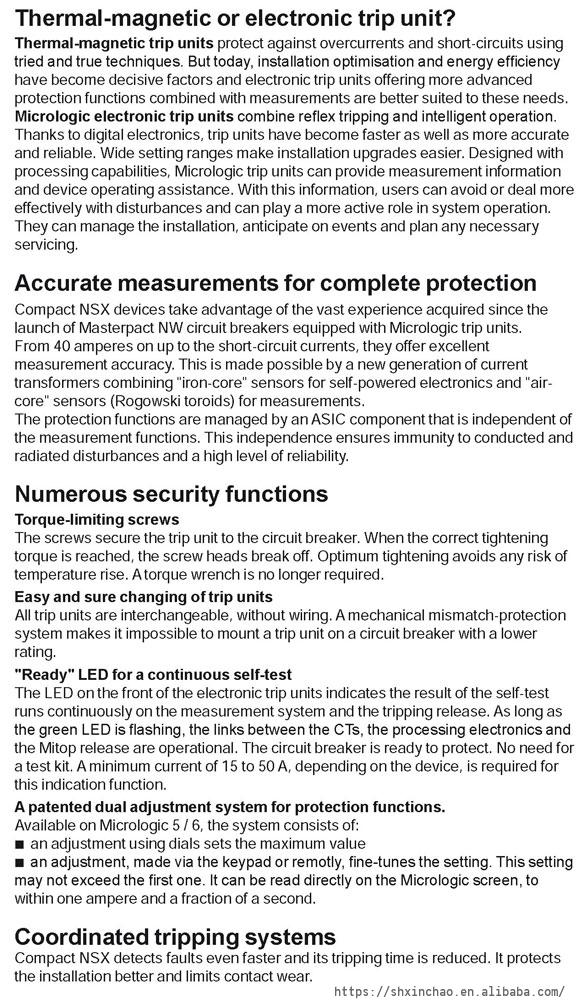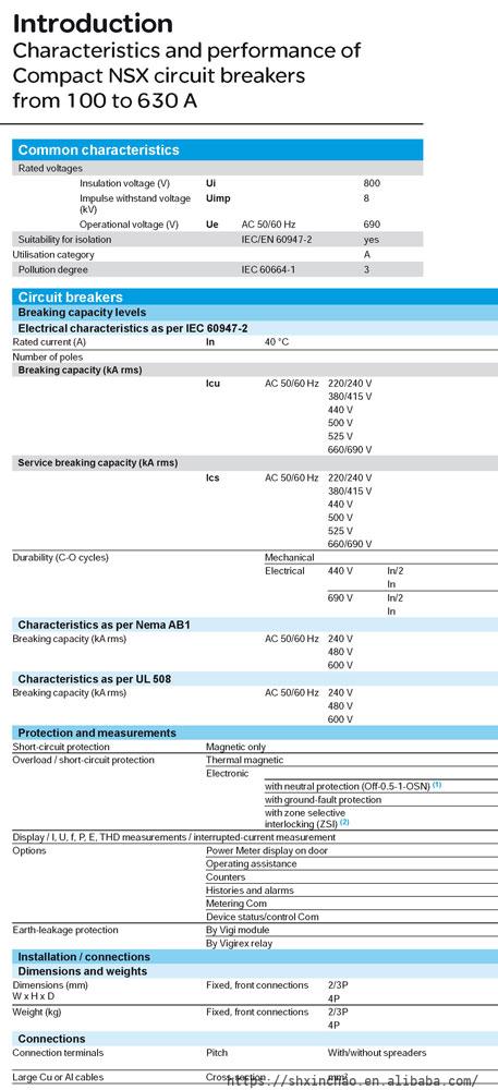 Compact NSX type moulded case circuit breaker is one of new type breakers which our company adopts international advanced design, manufacture technology to develop. The rated insulating voltage is 950V. Suitable for AC 50Hz (60Hz). Rated working voltage 690V or below, rated working current is 12.5A to 630A of circuit and used in distributing electric energy. Non-frequent making and breaking in the normal conditions and protecting when circuit and installation are overload, short circuit and lacking voltage. Rated shell-rack and the breaker whose current is under 400A, take protection effect when mouse cage motor’s non-frequent start, breaking off working and protecting form overload, short circuit and lacking voltage. The product conforms to GB14048.2, IEC 60947-2 standards.