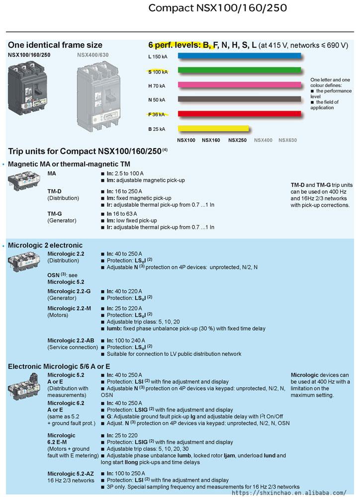 MCCB Circuit Breaker NSX100 NSX160 NSX250 NSX400 NSX630 NSX800 3Pole 4Pole Compact NSX Molded Case Circuit Breaker
