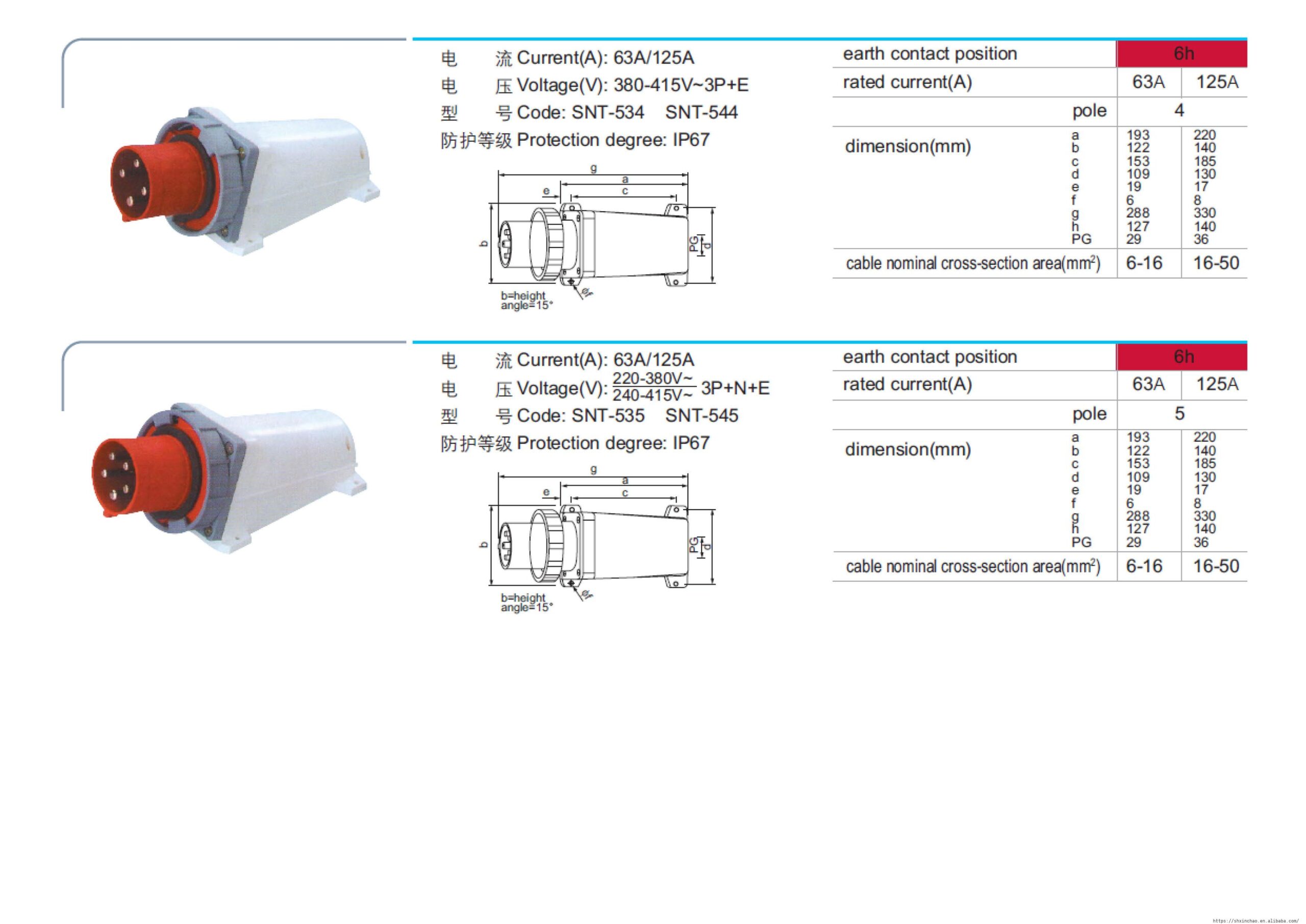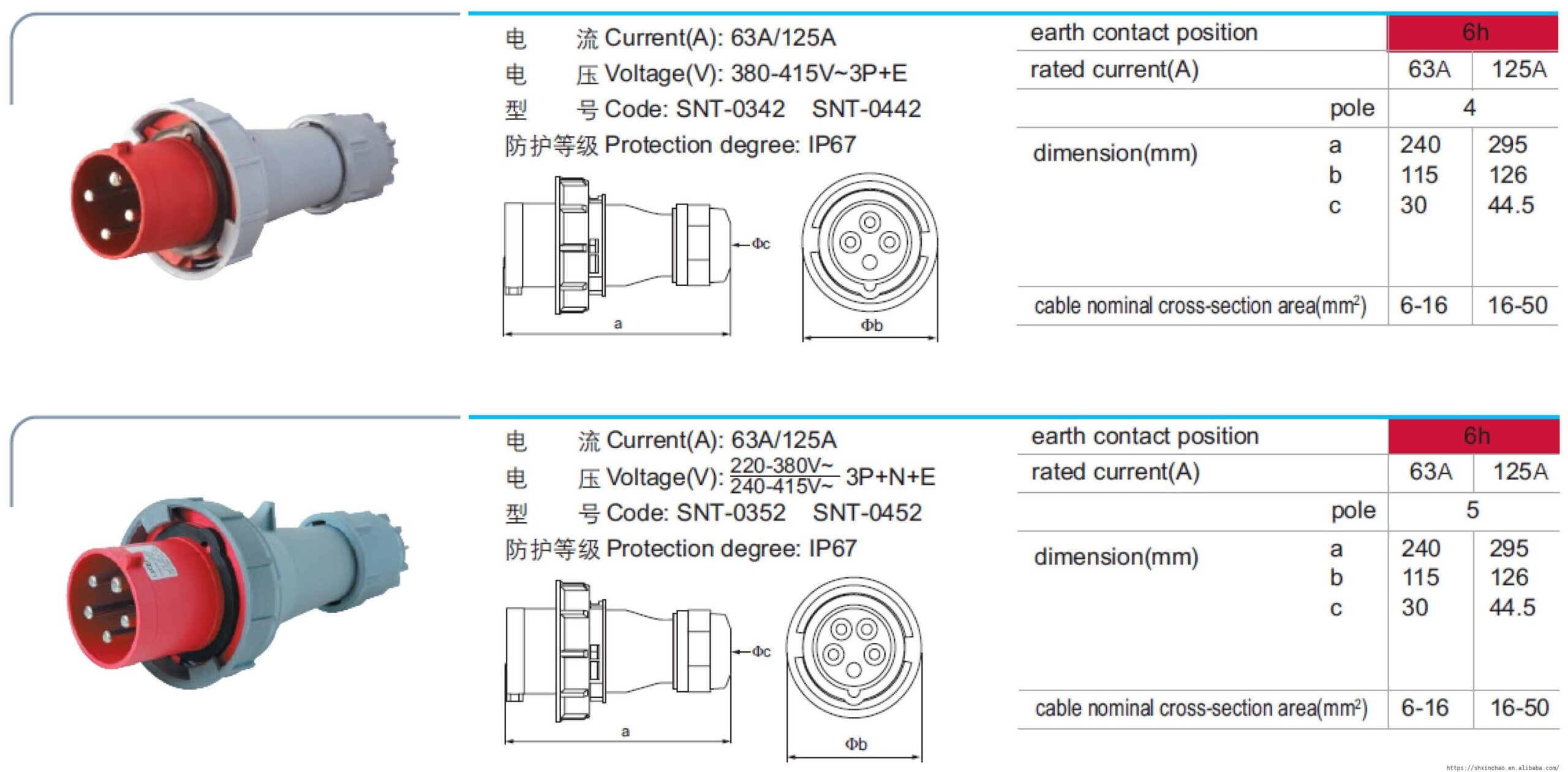 We can offer 2P+E, 3P+E, and 3P+N+E plug and socket both of IP44 and IP67 with current