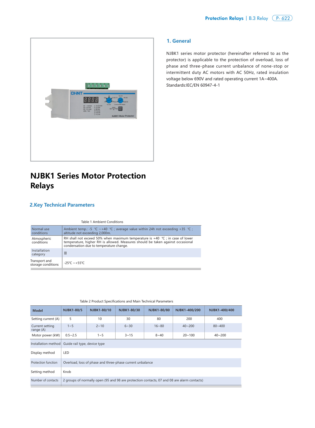 | Protection | Overload, phase loss, unbalanced current |