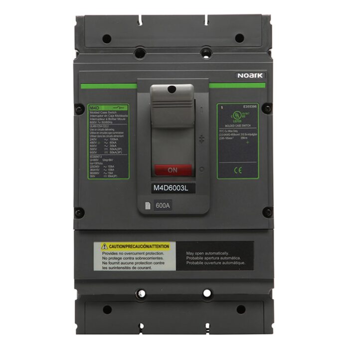 NOARK Electric Ex9 Series offers a complete range of Molded Case Circuit Breakers in six frame sizes: M1 – 150 A, M2 – 250 A, M3 – 400 A, M4 – 600 A, M5 – 800 A, and M6 – 1,200 A. Each frame size offers a range of interrupting voltage ratings from 240-690 Vac and 250-600 Vdc. The M series conforms to global standards that include UL489, CSA C22.2 No 5 and IEC 60947-2.
