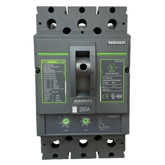 NOARK Electric Ex9 Series offers a complete range of Molded Case Circuit Breakers in six frame sizes: M1 – 150 A, M2 – 250 A, M3 – 400 A, M4 – 600 A, M5 – 800 A, and M6 – 1,200 A. Each frame size offers a range of interrupting voltage ratings from 240-690 Vac and 250-600 Vdc. The M series conforms to global standards that include UL489, CSA C22.2 No 5 and IEC 60947-2.