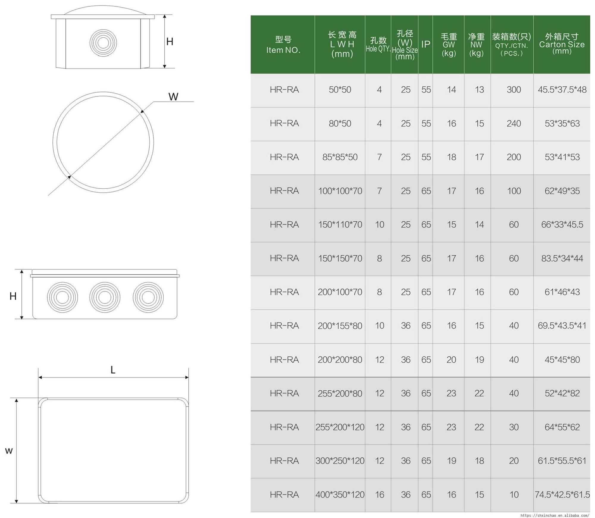 RFB-RA 100X100X70 150x150x70 200x200x80 300x250x120 400x350x120 mm ABS plastic IP65 Waterproof Junction Box with knock out
