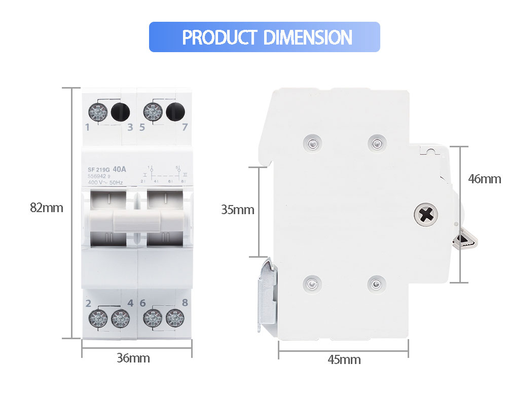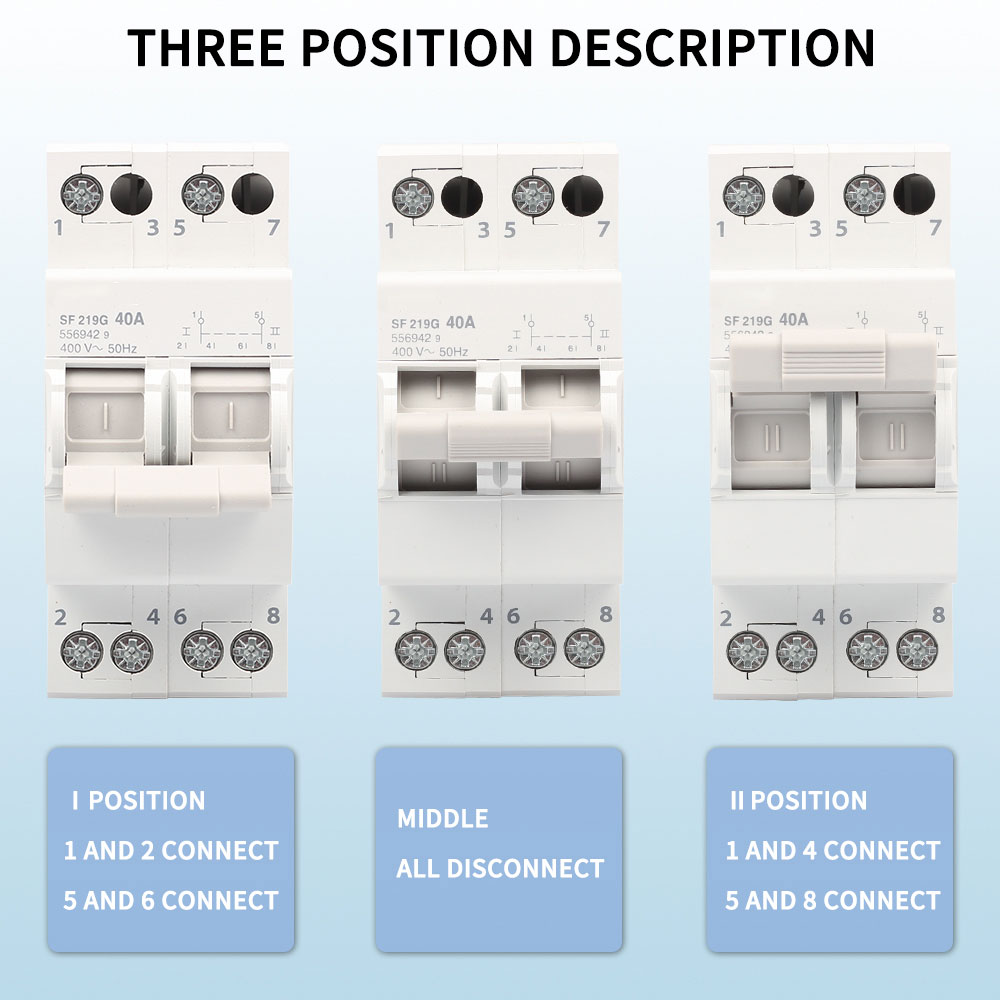 SF219G SF219F SF263 Change over Switch 2P 25A 40A 63A 2 Pole 2 way centre off Din Rail type Modular Manual Changeover Switch