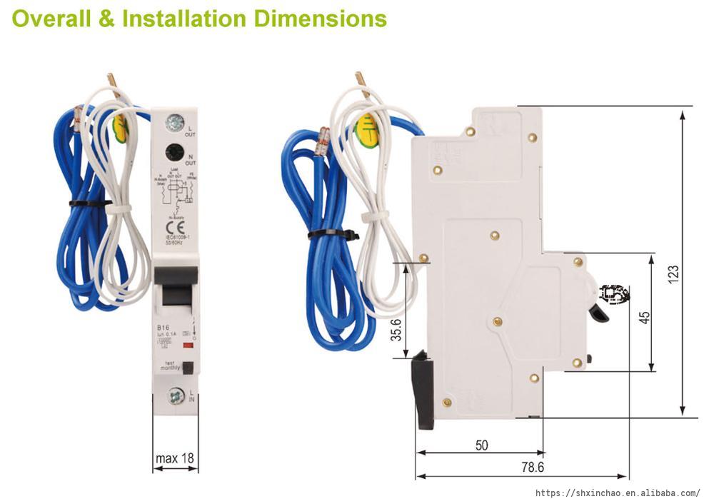 Home Din-Rail Mounted Products RCBO Single Pole and Switched Neutral 30mA 100mA 6A 10A 16A 20A 32A 40A 50A 63A AC or A type DPN 6KA 10KA one module Long body RCBO